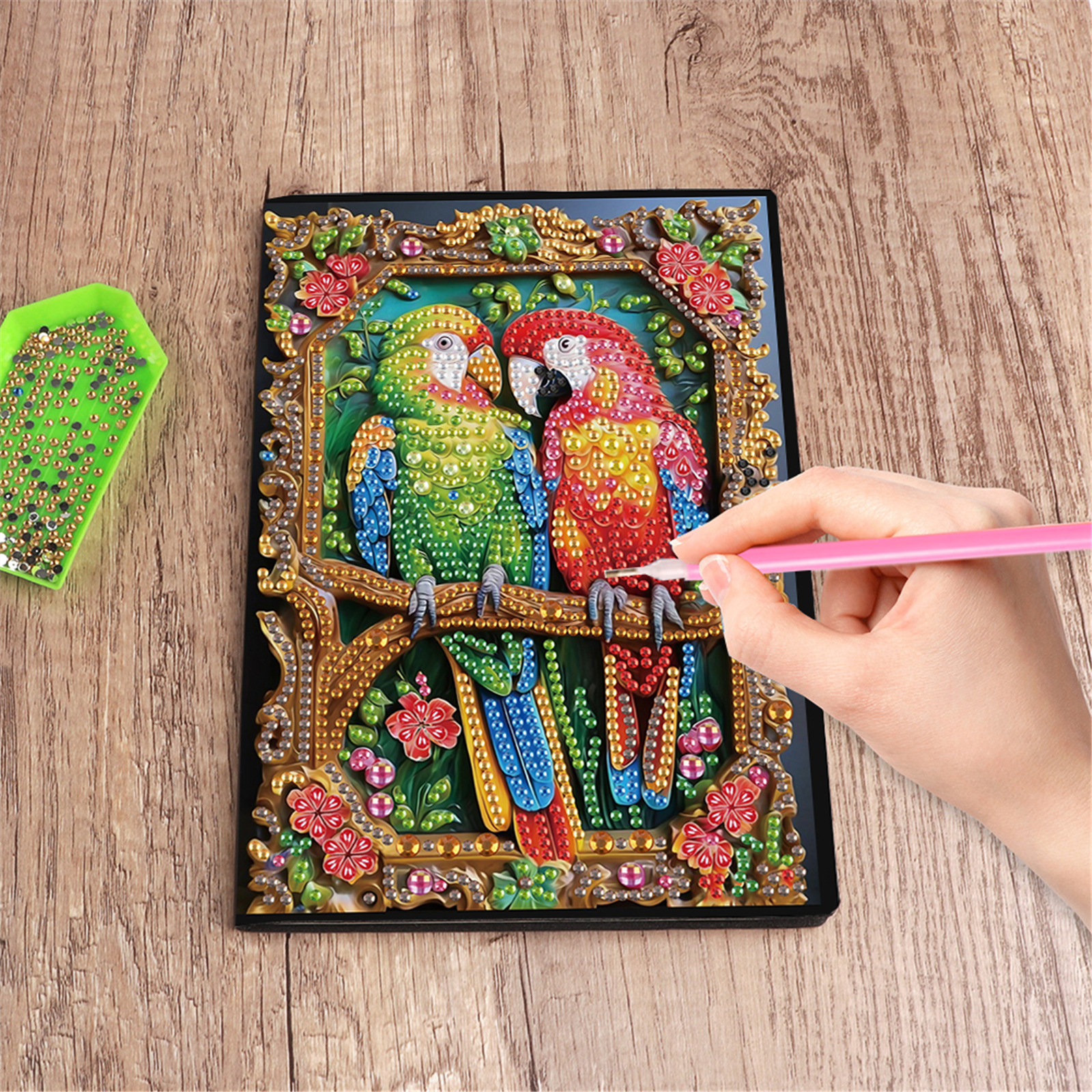 10. After adding all the crystals, you will have a dazzling diamond painting notebook. You can use it to jot down your daily tasks or innermost thoughts, or as a gift for loved ones.