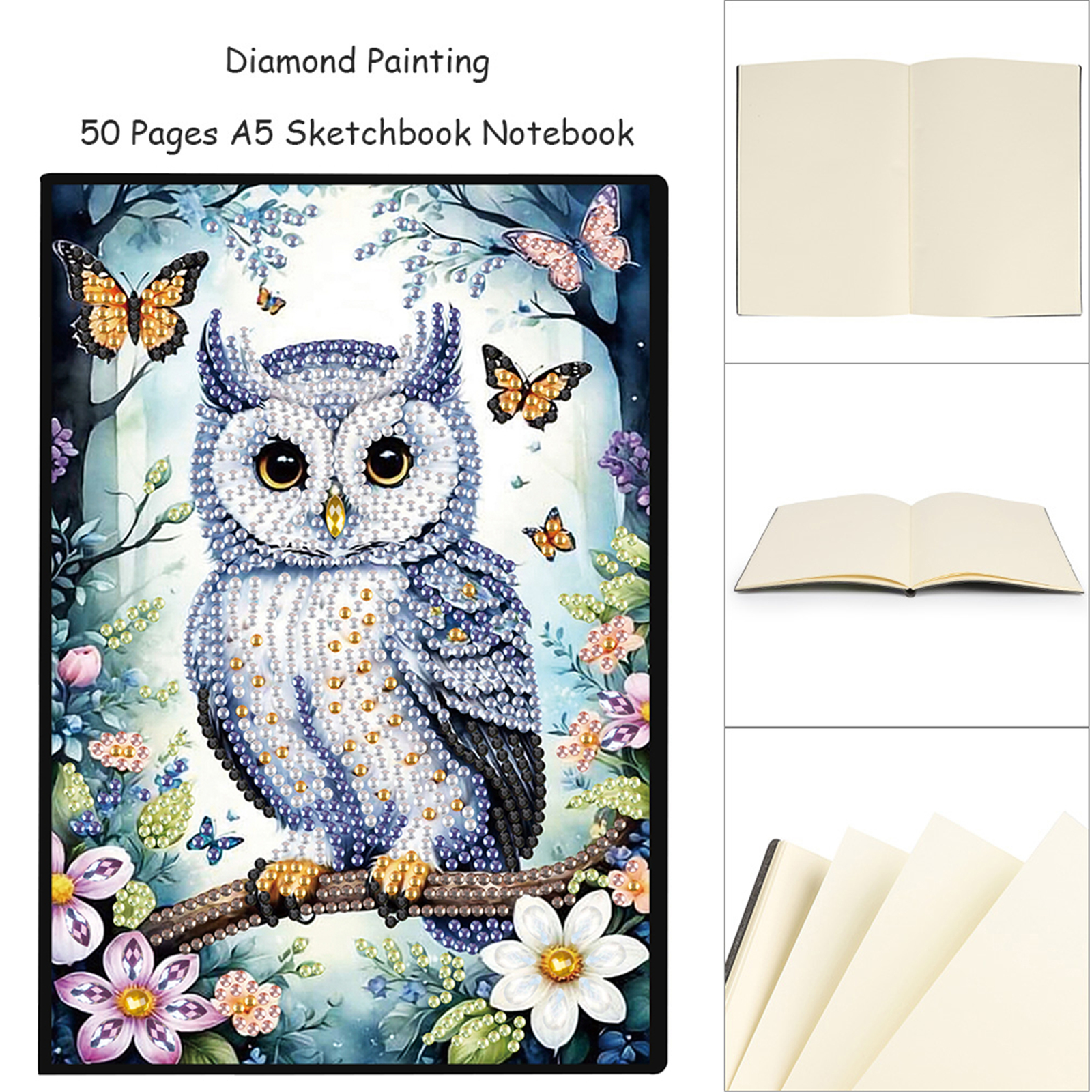 2pcs Owl Partial DIY 50 Pages A5 Diamond Painting Notebook for Study Drawing