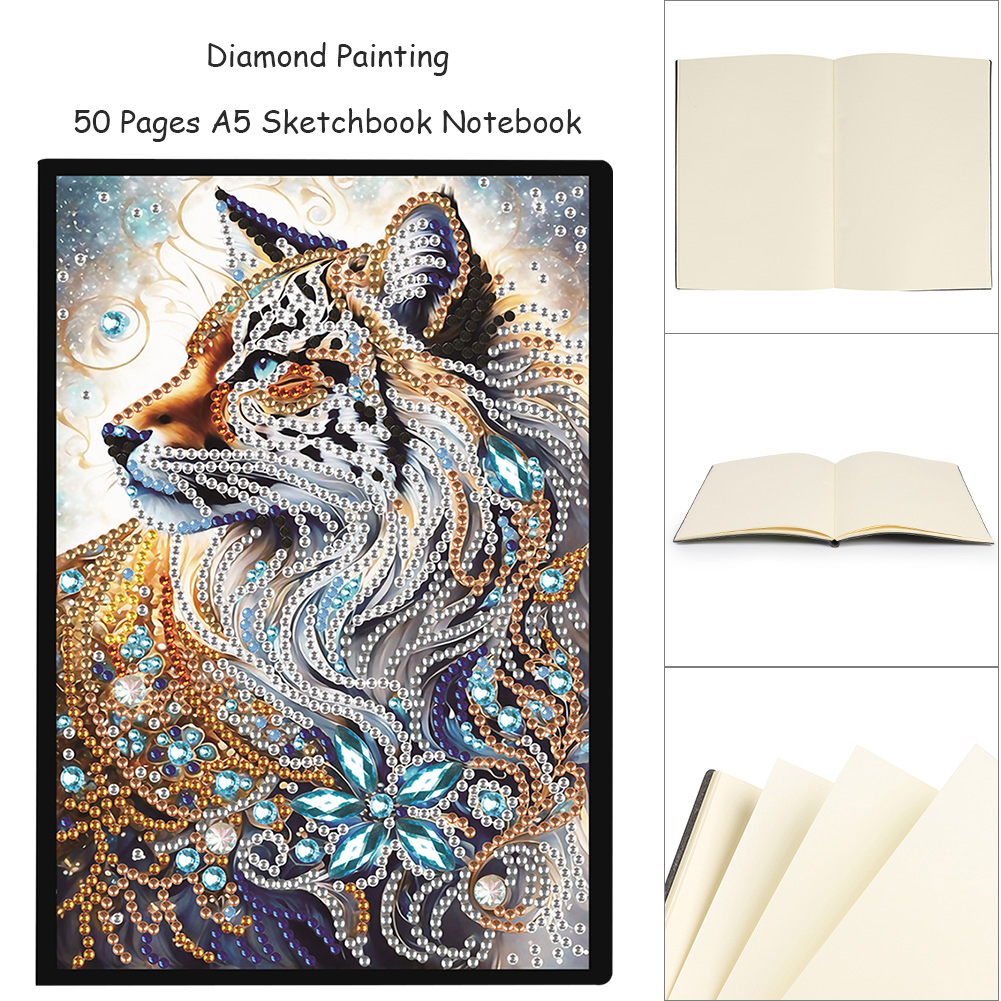 5D DIY Fox Special Shaped Diamond Painting 50 Pages Notebook for Beginners