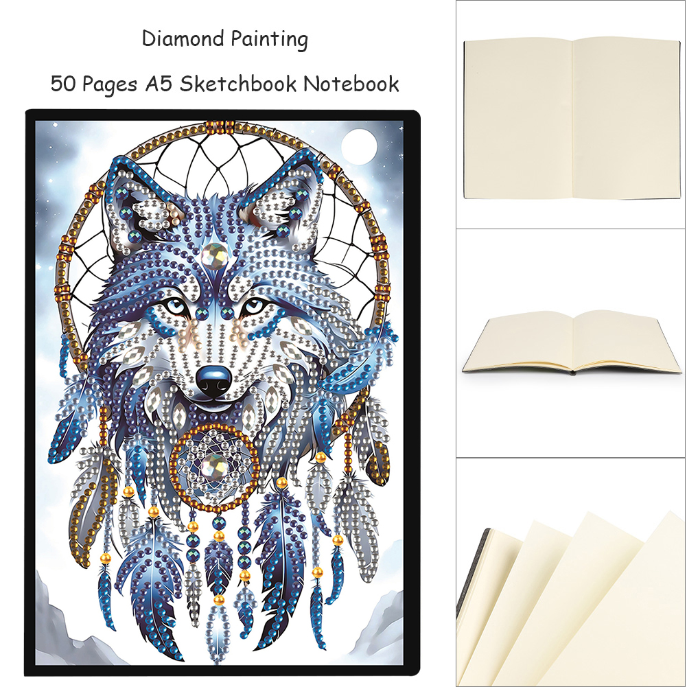 Animal 5D Diamond Painting Notebook 50 Pages A5 DIY Diamond Art Diary Book Journal Notebook Diamond Art Notebook Kits for Adults