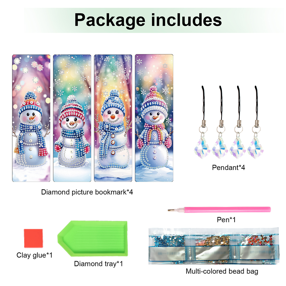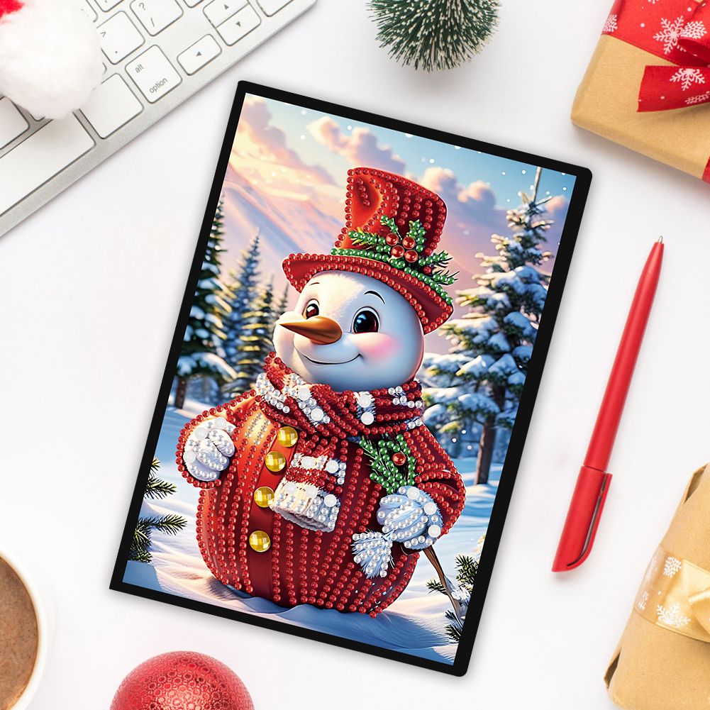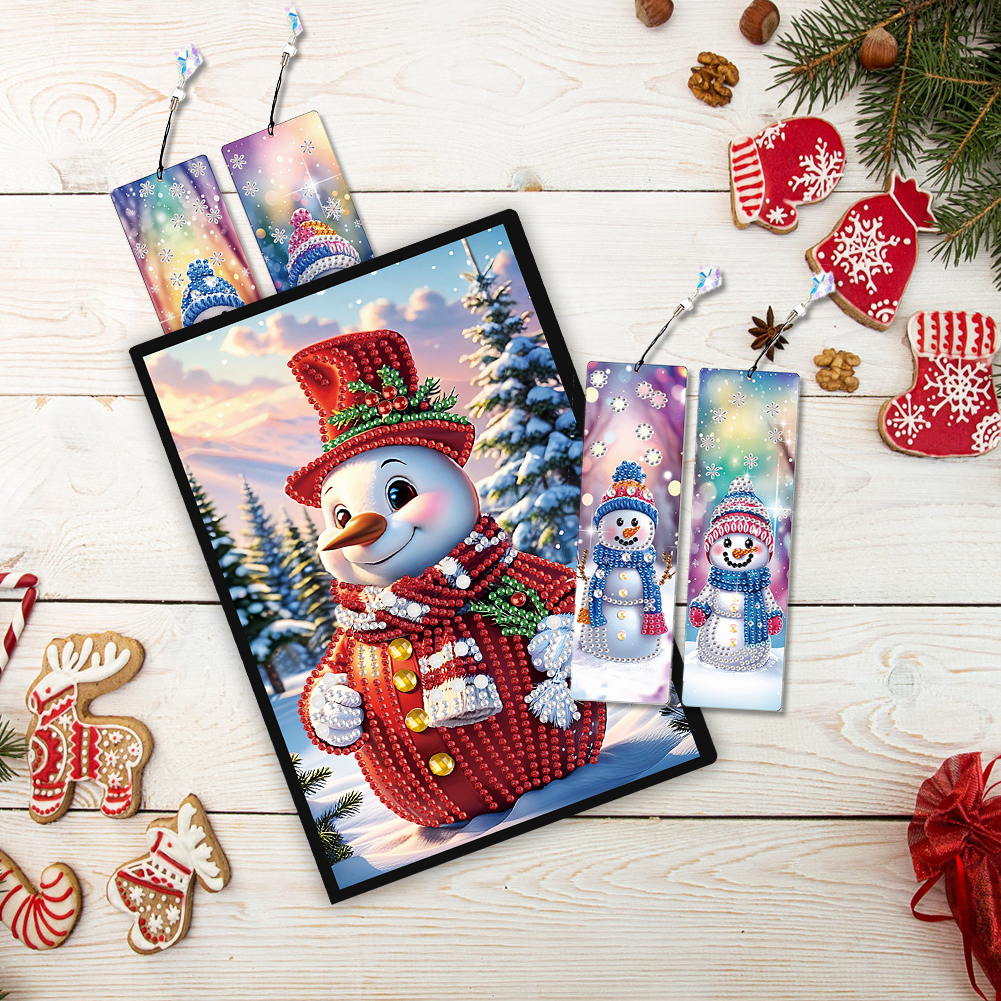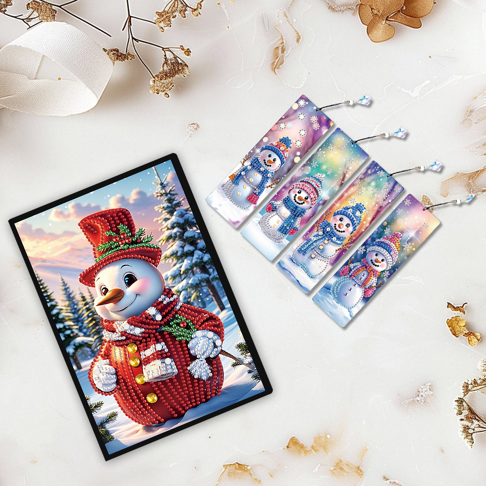 Snowman A5 Size Diamond Painting Notebook Set with 4Pcs Bookmark Holiday Gift