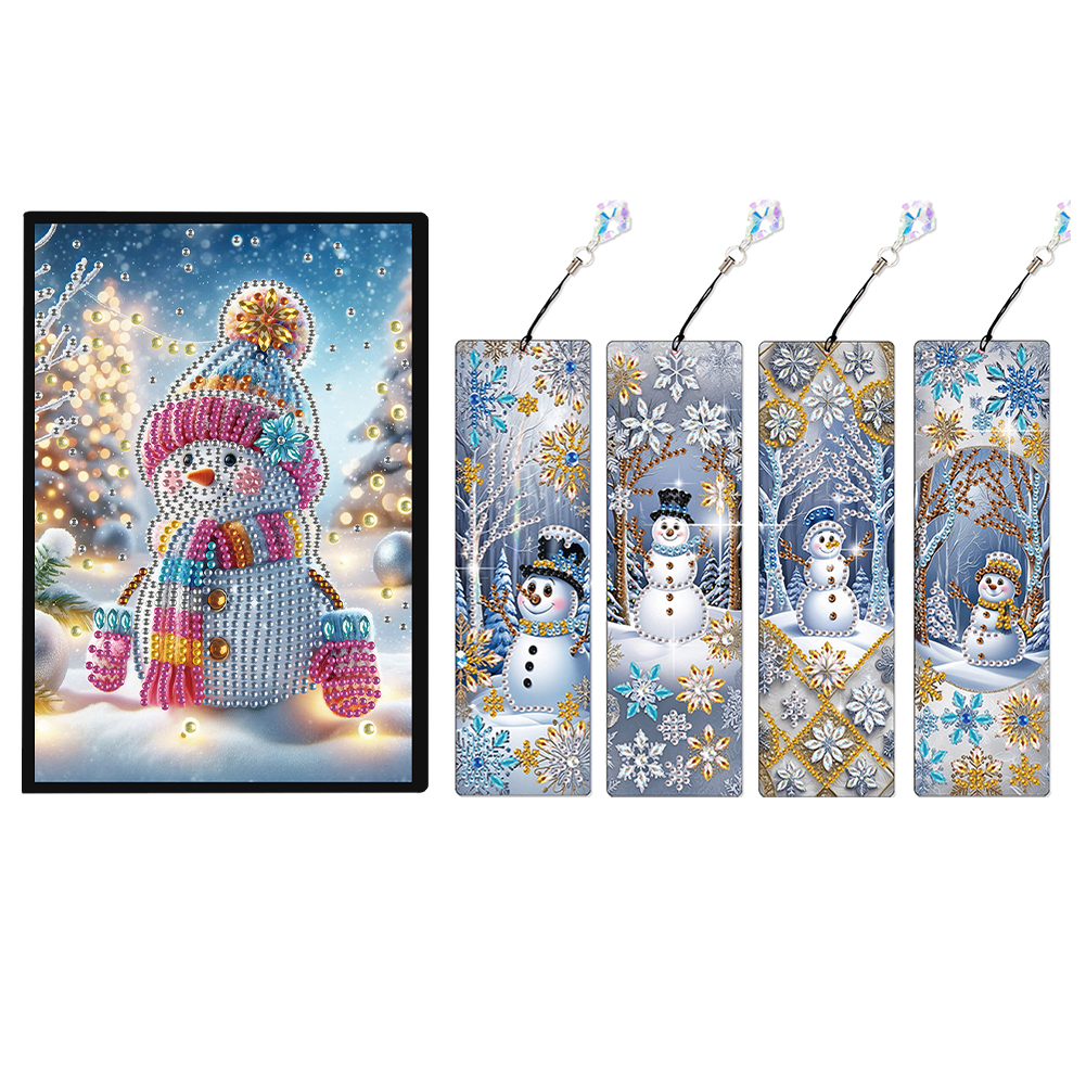Snowman A5 Size Diamond Painting Notebook Set with 4Pcs Bookmark Holiday Gift