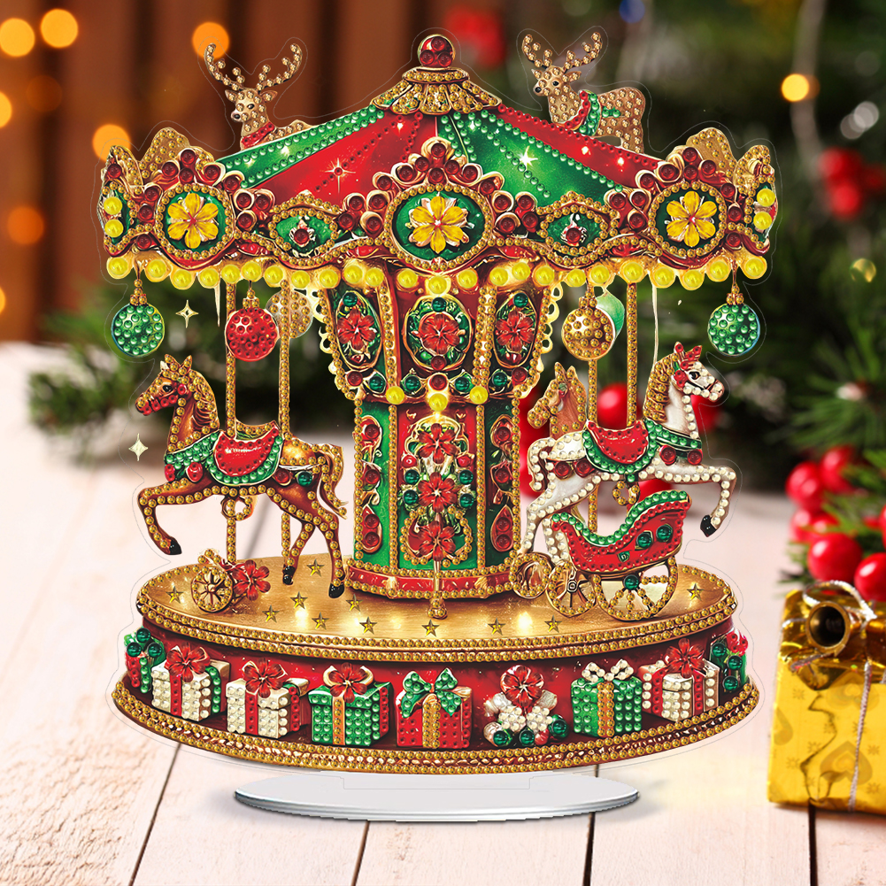 DIY Christmas Carousel Acrylic Diamond Painting Desktop Ornaments Kit for Adults