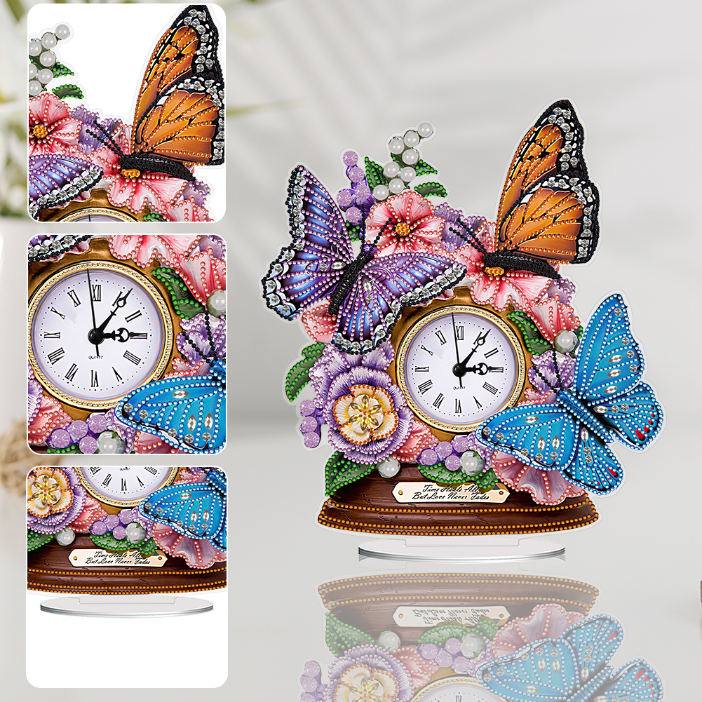 DIY Flower Butterfly Special Shape Acrylic Diamond Painting Clock Art Craft