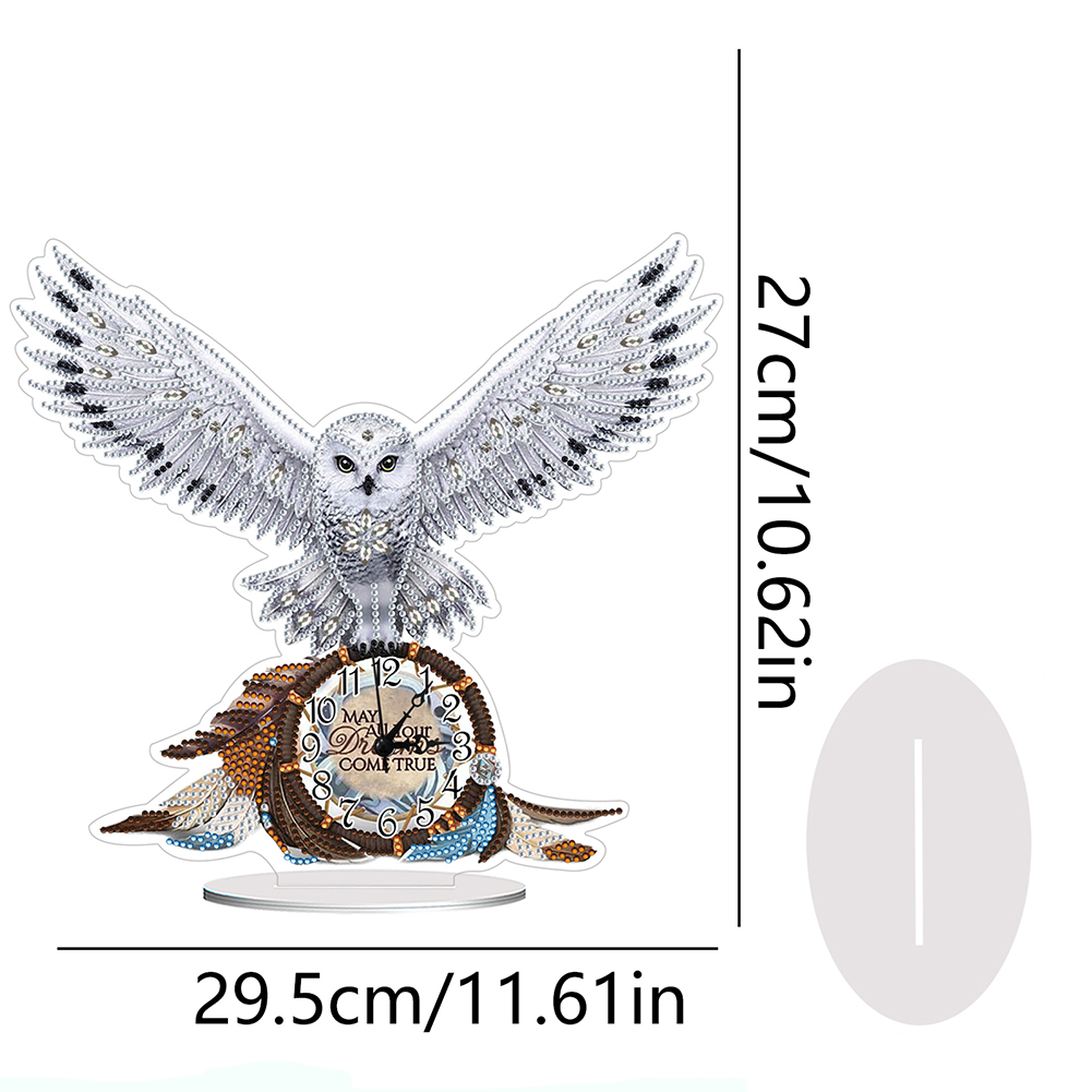 DIY White Owl Special Shape Acrylic Diamond Painting Clock Art Craft