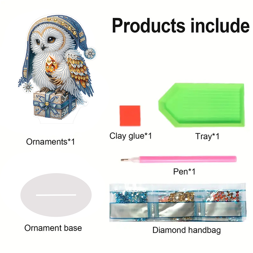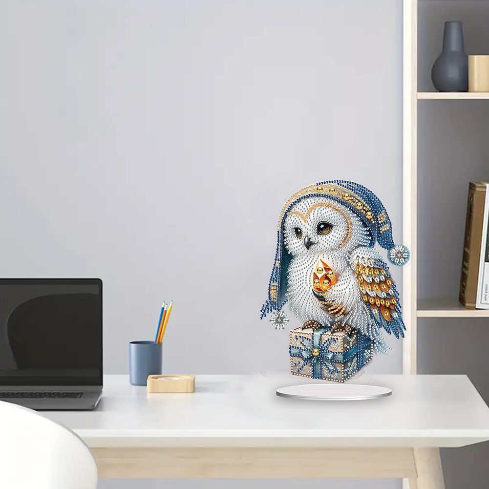 DIY Winter Owl Acrylic Single Sided Diamond Painting Desktop Ornaments Kit for Office Desktop Decor