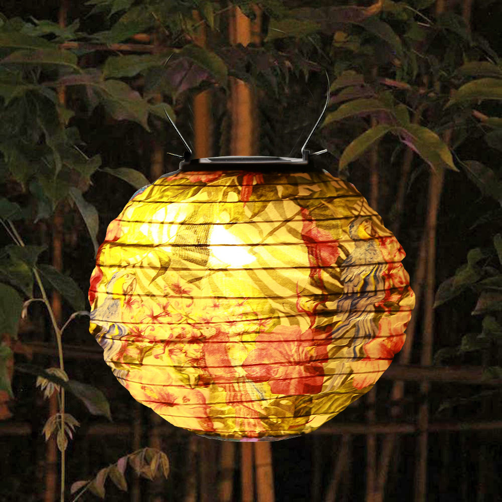 20cm Waterproof Solar LED Chinese Lantern Light Outdoor Garden Wedding Holiday Party Printed Decorative Round Hanging Lamp