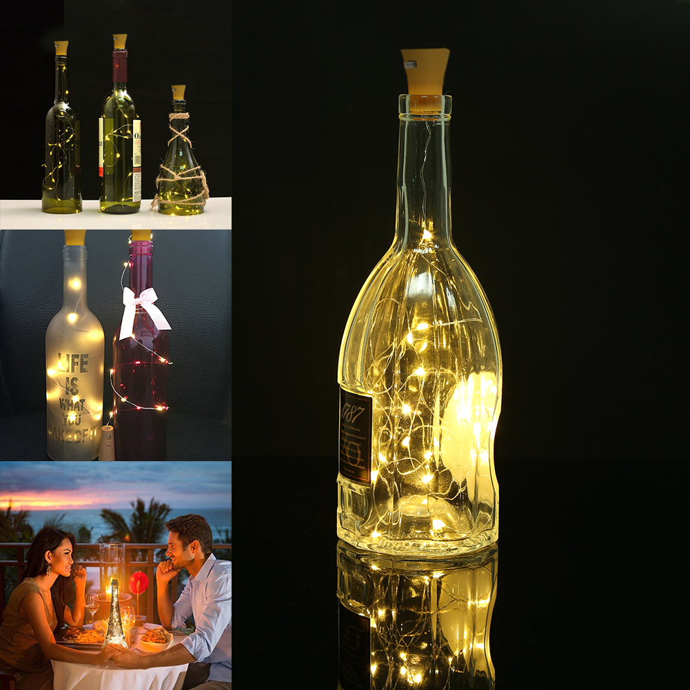 10LED/20LED Solar Wine Bottle Garland String Lights Battery Powered Cork Copper Wire Fairy Lamp Wedding Bar Party Decor