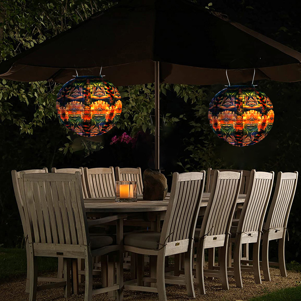 Solar Powered Painted LED Lantern Outdoor Waterproof Garden Patio Yard Garland Hanging Lighting for Party Holiday Decoration