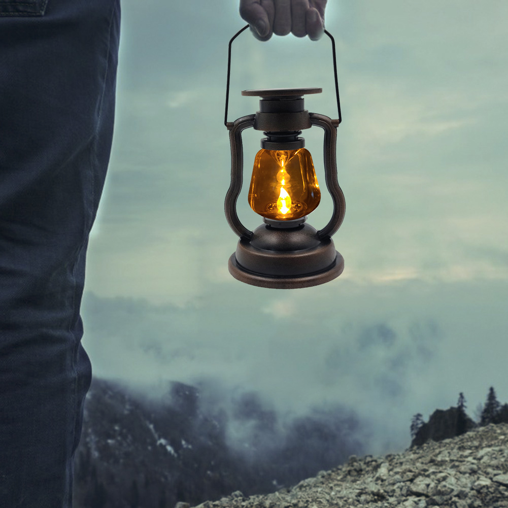 Solar Retro Classic Kerosene Lamp Portable LED Lantern Lights Antique Decoration