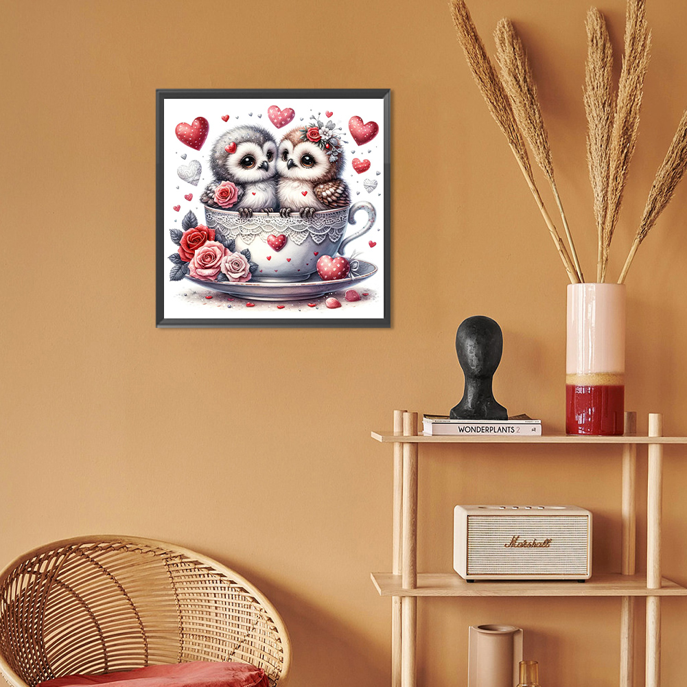 Diamond Painting - Full Round Drill - Love Flower Owl(Canvas|30*30cm)
