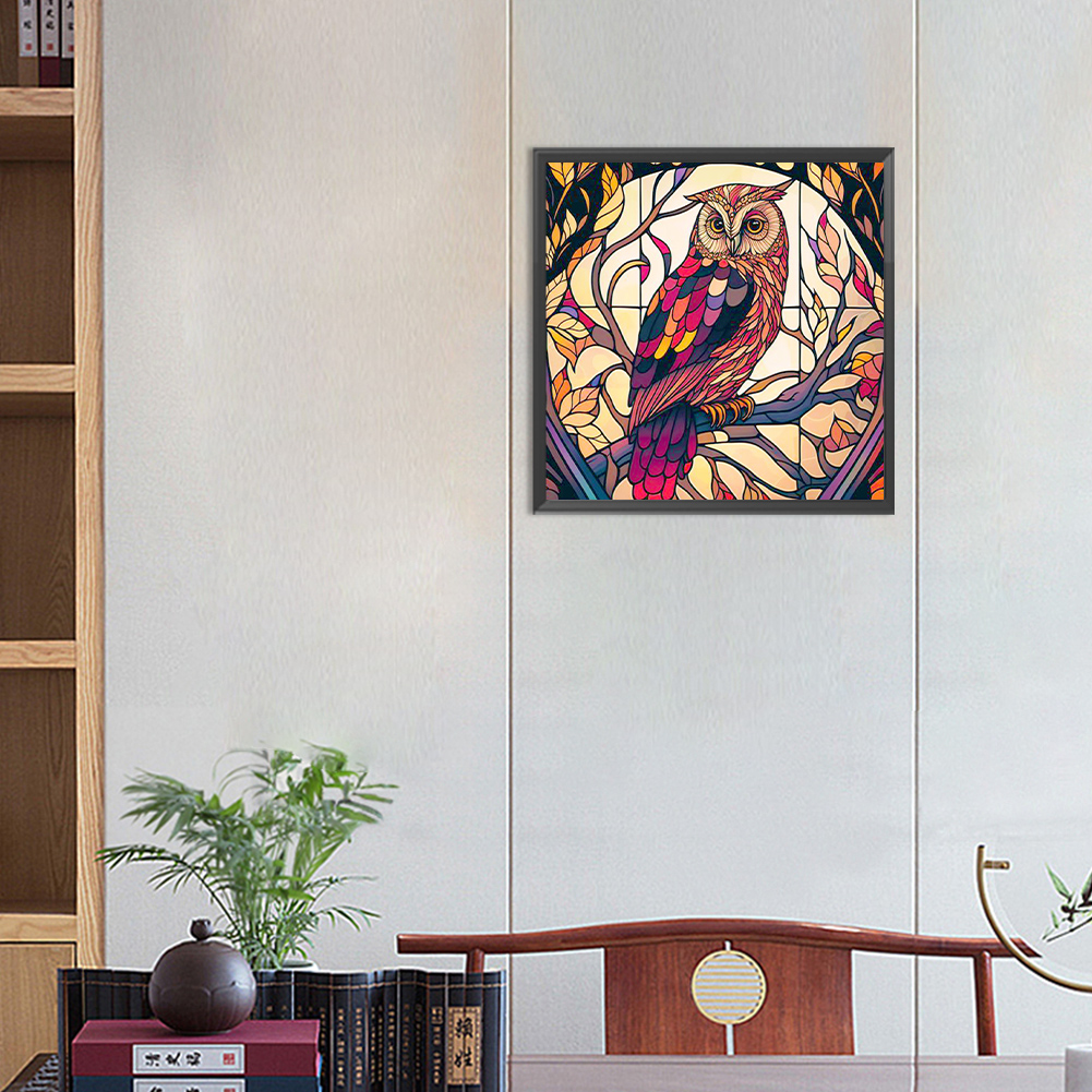 Diamond Painting - Full Round Drill - Stained Glass Owl(Canvas|30*30cm)