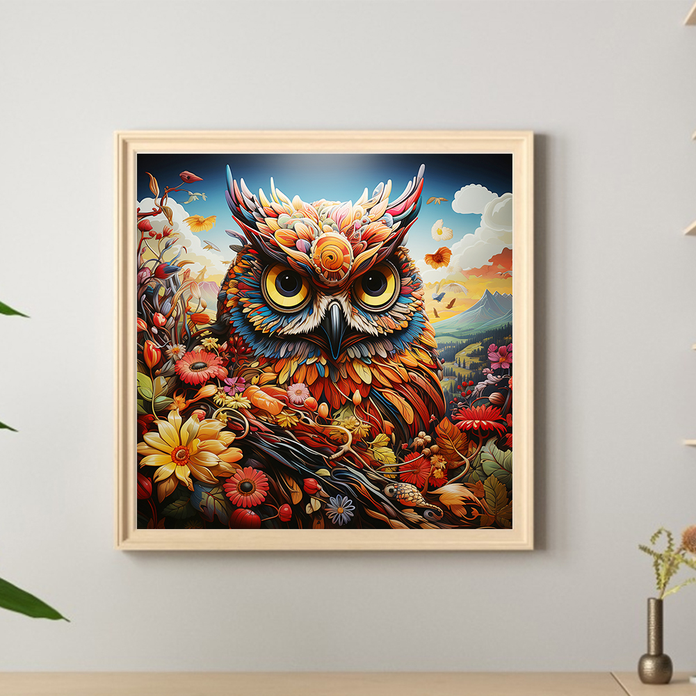 Full Round Diamond Painting 30*30cm - Pastoral Animal Owl