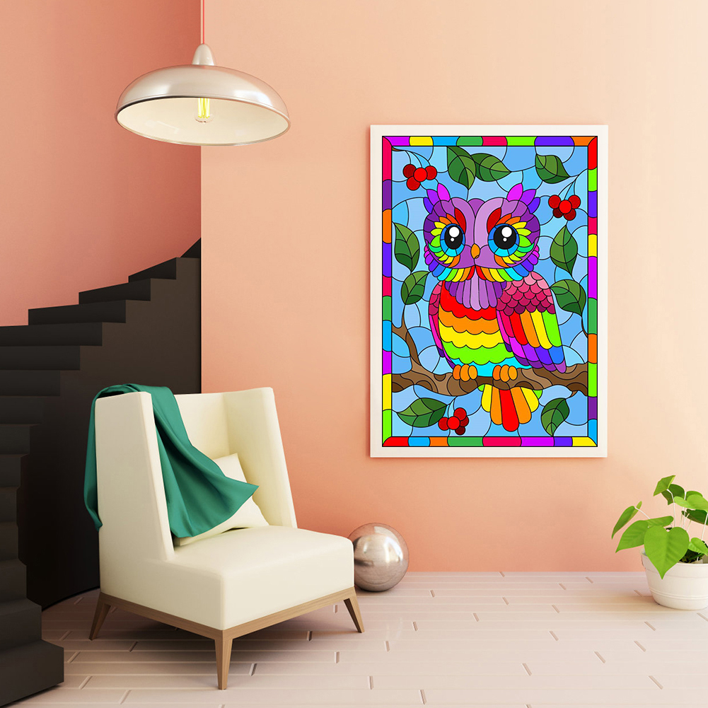 Full Round Diamond Painting 30*40cm - Rainbow Owl