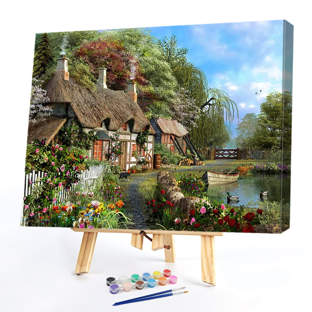 Painting By Numbers Kit DIY Country Villa Hand Painted Canvas Oil Art Picture Craft Home Wall