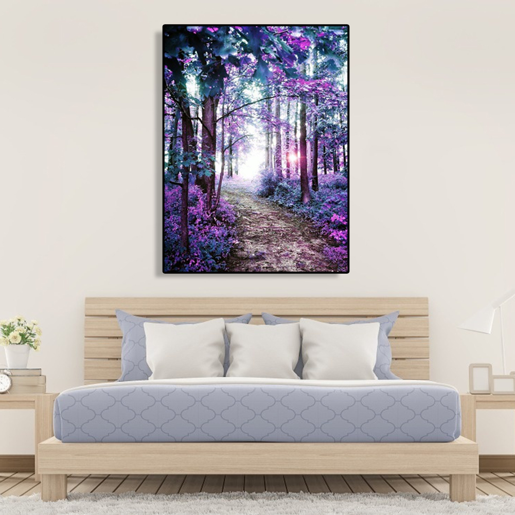 Painting By Numbers Kit DIY Purple Grove Hand Painted Canvas Oil Art Picture Craft Home Wall Decor