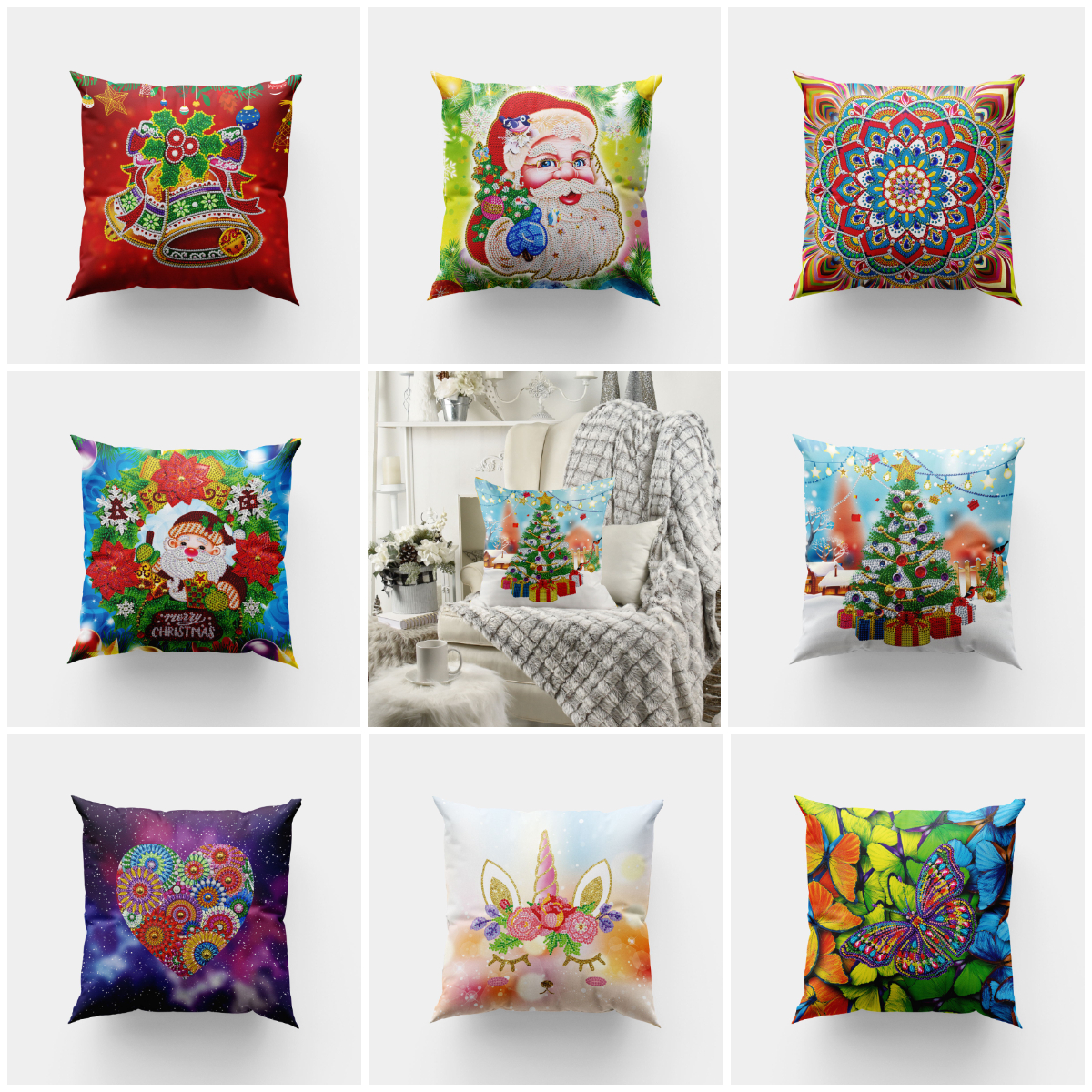 5D Mosaic Diamond Pillow Case Rhinestone Drawing Drilling Pillow Cover DIY Resin Painting Kit Sofa Decor