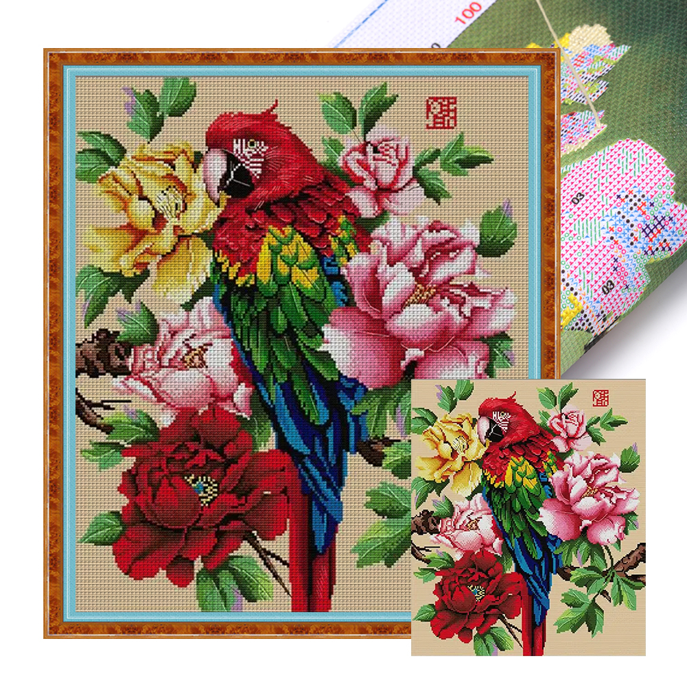 14CT Full Stamped Cross Stitch - Fairview Parrot(Canvas|43*47CM)