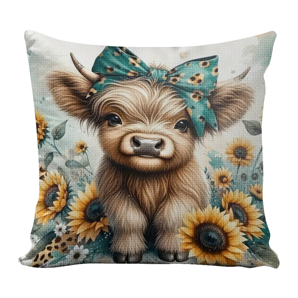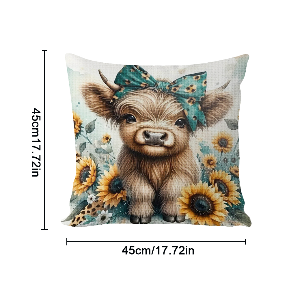 11CT Stamped Cross Stitch Pillowcase - Sunflower Highland Cow(Canvas|45*45CM)