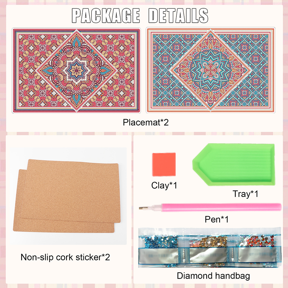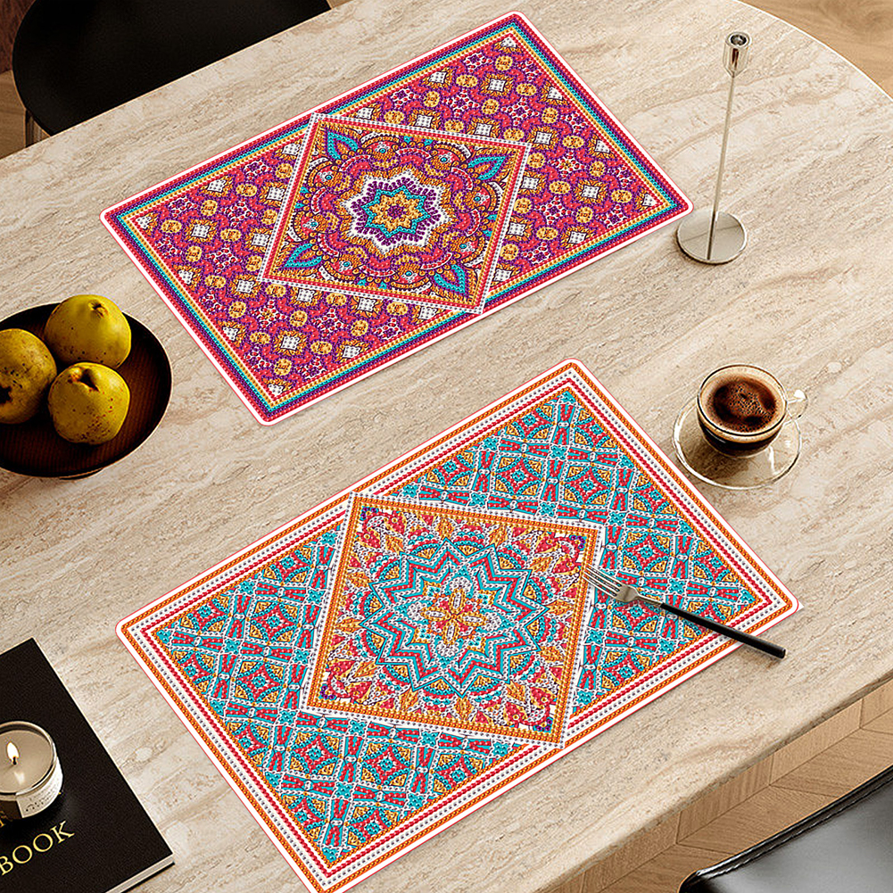 2Pcs Mandala Pattern Diamond Painting Placemat DIY Diamond Crafts(30*20cm)