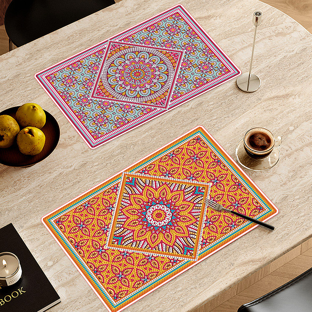 2Pcs Mandala Pattern Diamond Painting Placemat DIY Diamond Crafts(30*20cm)