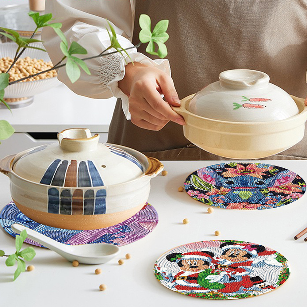 4pcs DIY Disneyland Cartoon Wooden Diamond Painted Placemats for Dining Table Decor(16*16cm)