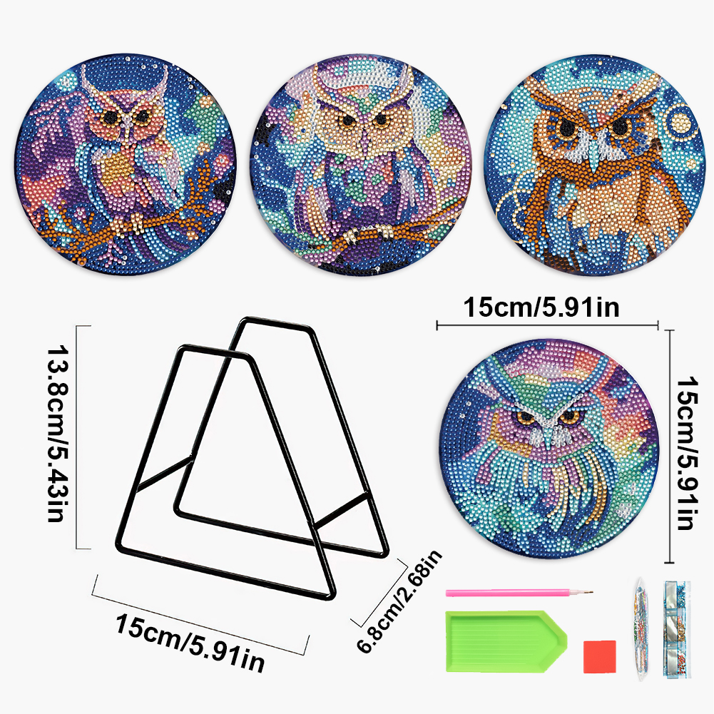 4pcs DIY Owl Wooden Diamond Painted Placemats for Dining Table Decor(15*15cm)