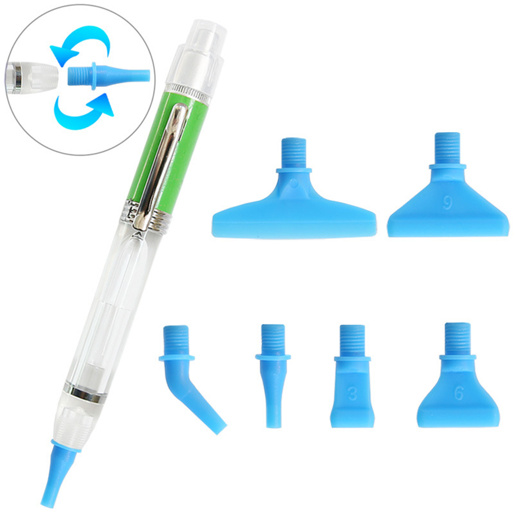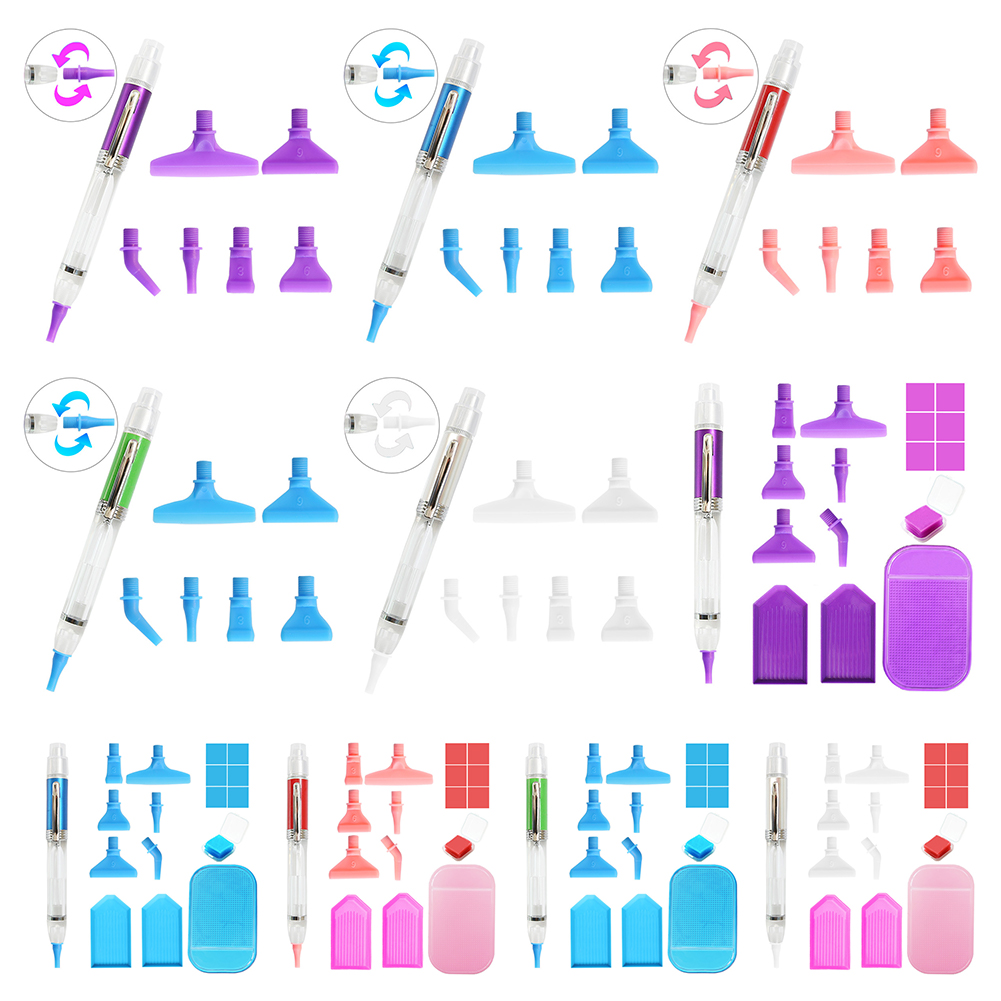 Packing Size: Pen Holder + 6 Threaded Plastic Heads (6*22*1.5cm), Tool Set: Pen Holder + 6 Threaded Plastic Heads + 6 Pieces Of Clay + 2 Drill Disks + 1 Anti-Slip Pad (14*22*2cm)