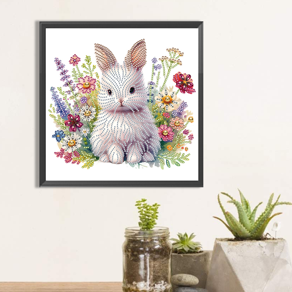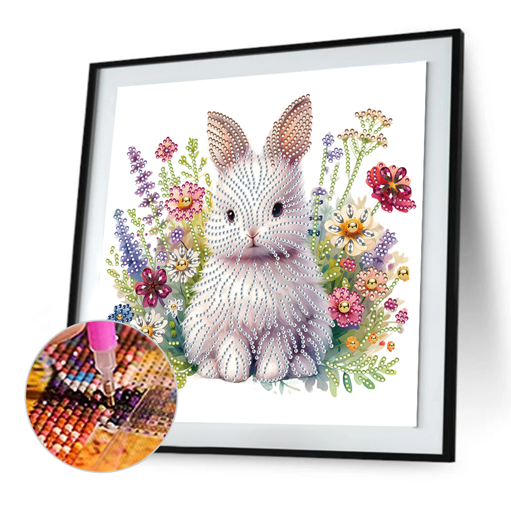 Diamond Painting - Partial Special Shaped Drill - Flowers Rabbit(Canvas|30*30cm)