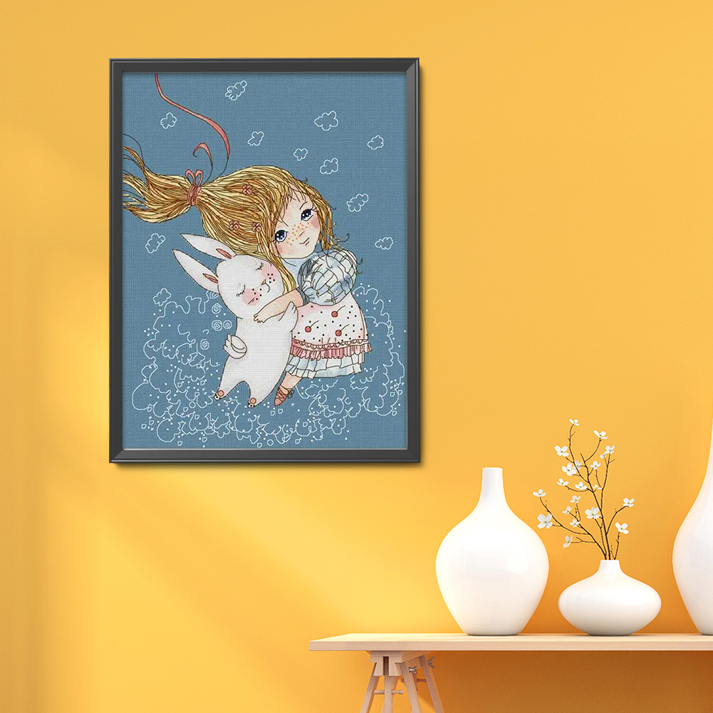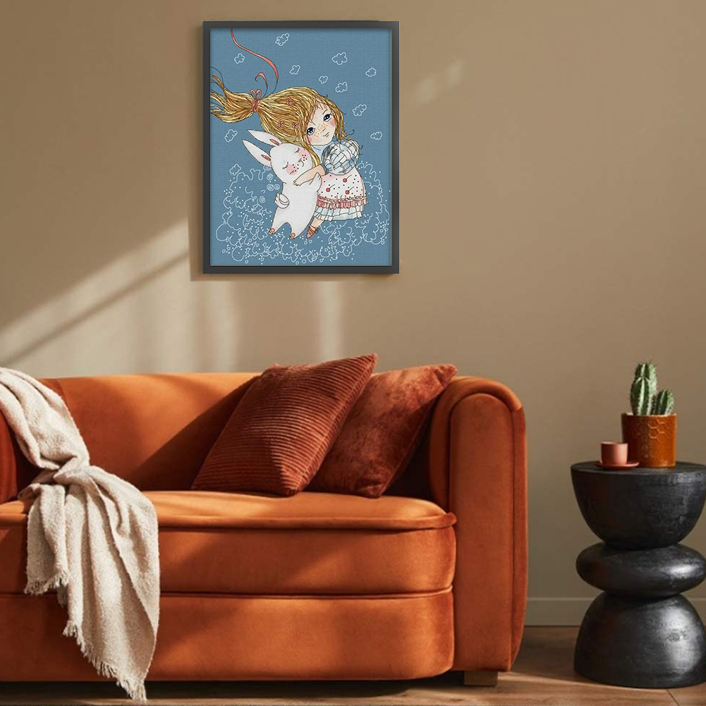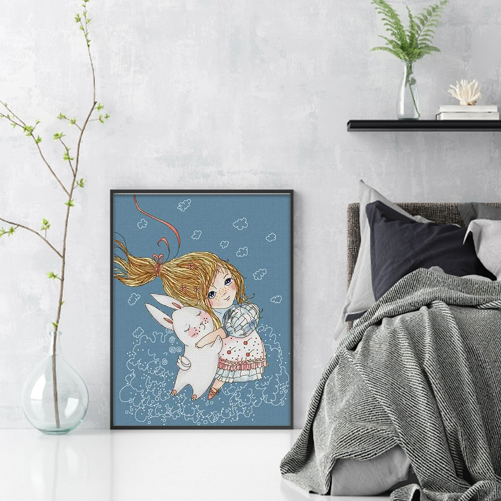 DIY Stamped Cross Stitch 14CT Full Embroidery 35*44cm - Girl And Rabbit