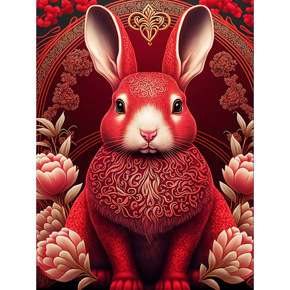 Full Round Diamond Painting 30*40cm - Red Golden Rabbit