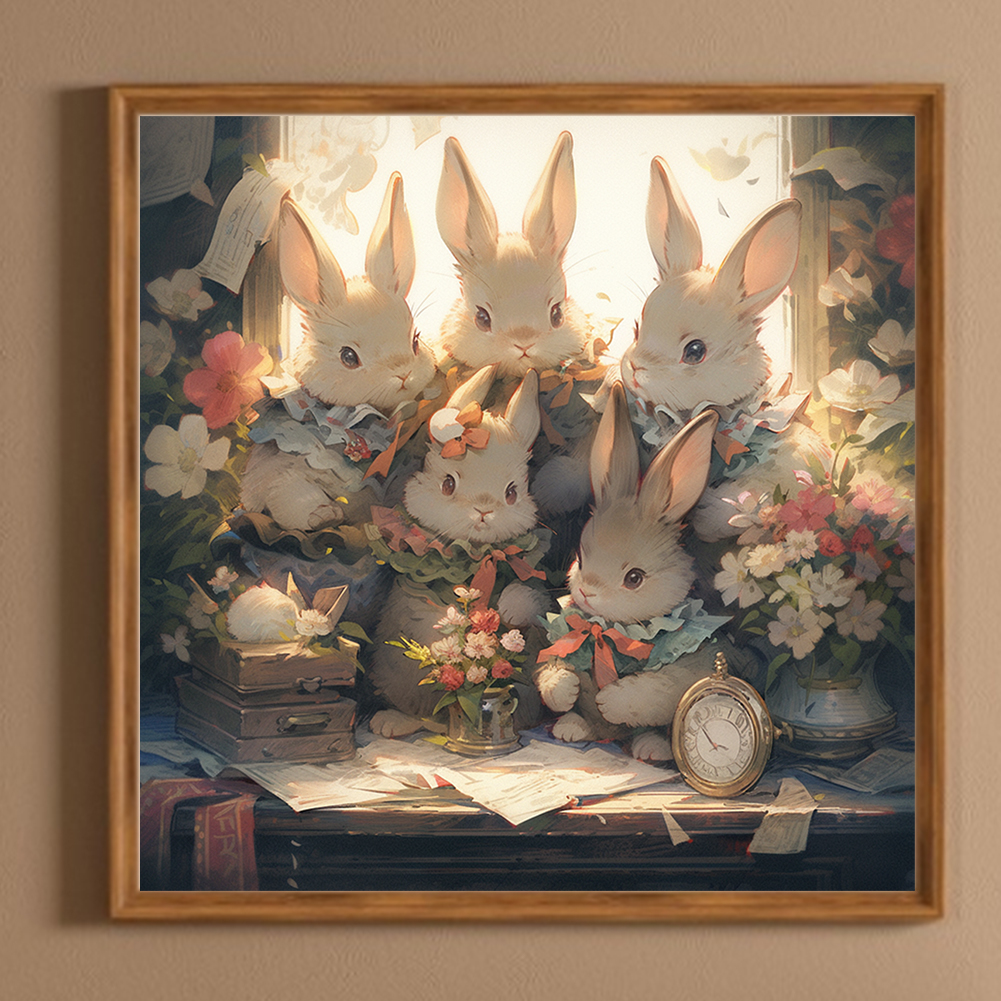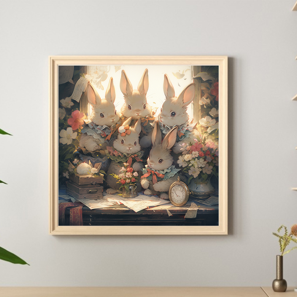 Full Round Diamond Painting 40*40cm - Rabbits Gather Together