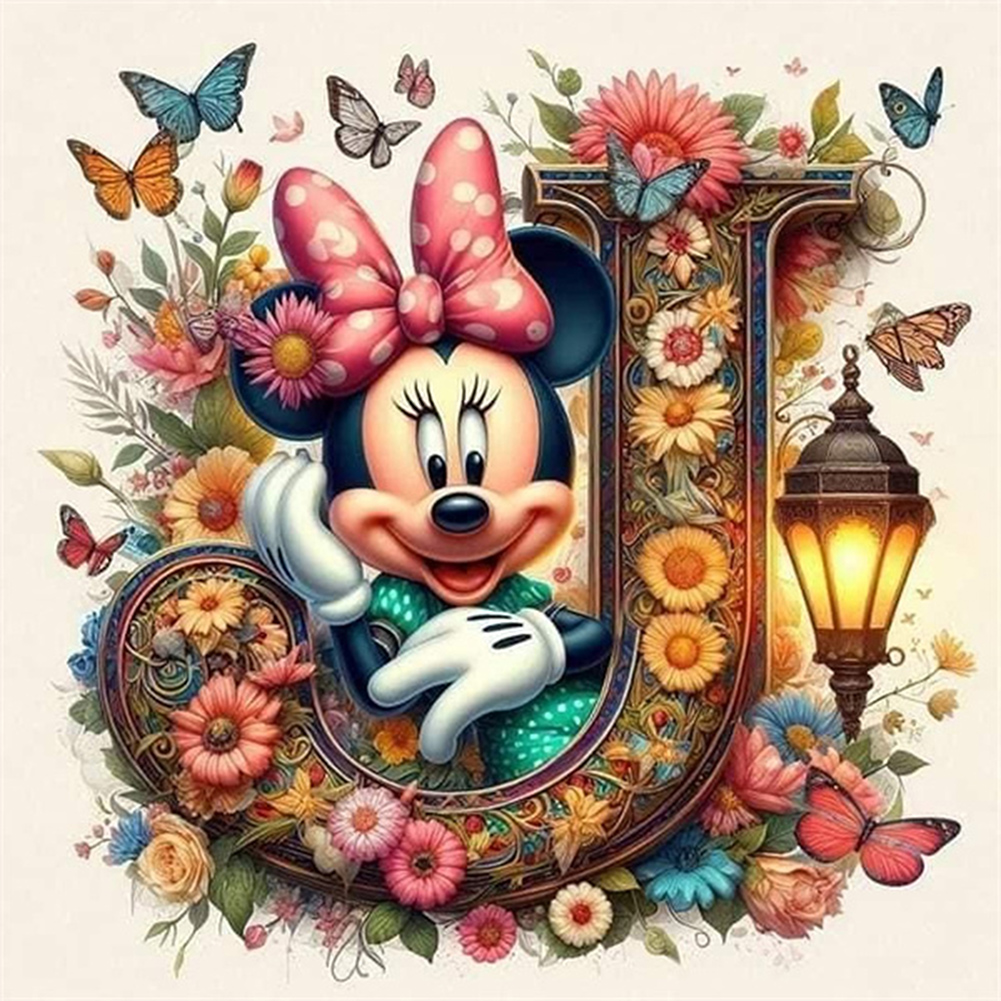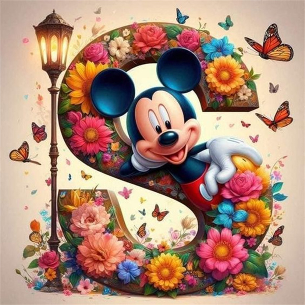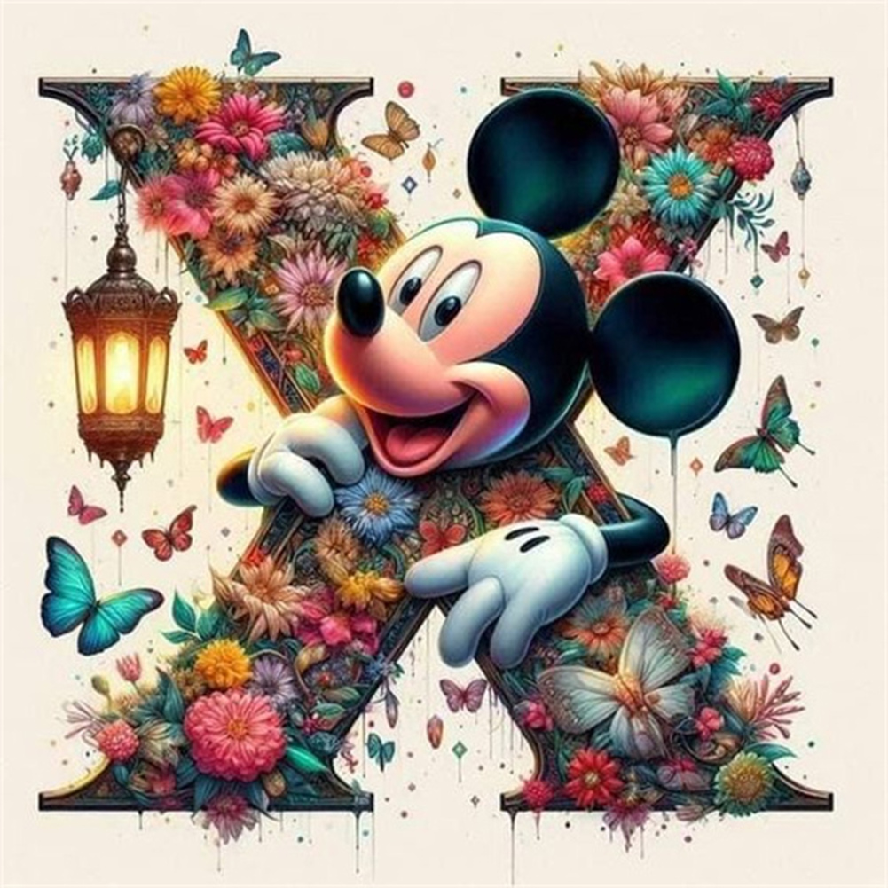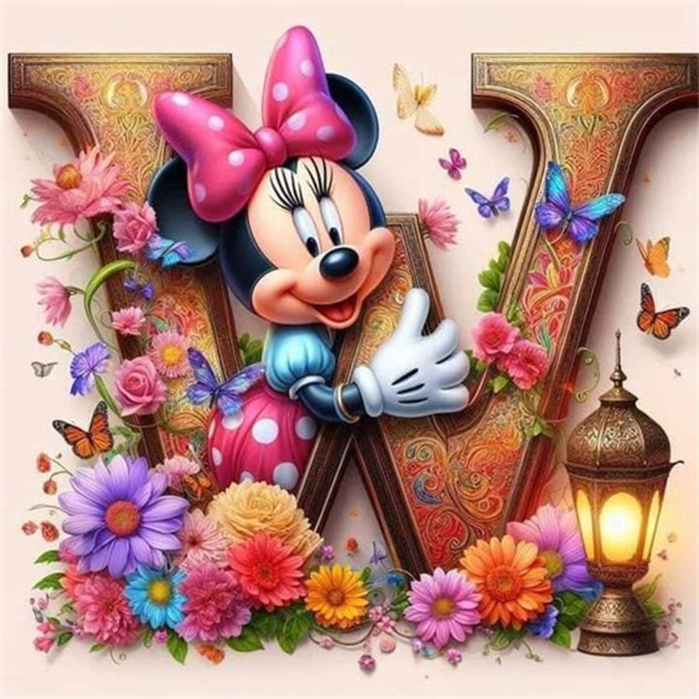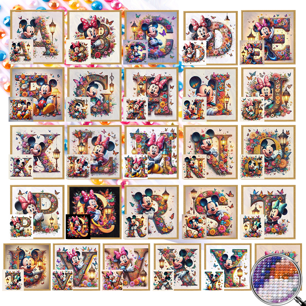 Partial AB Diamond Painting - Full Round Drill - Mickey Minnie Letters(Canvas|35*35cm)
