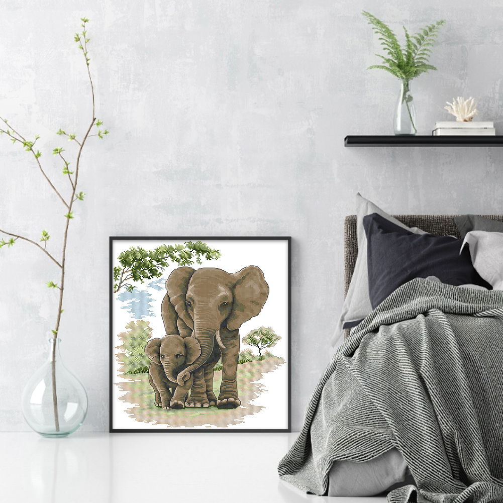 14CT Full Stamped Cross Stitch - Mother Child(Canvas|35*38CM)