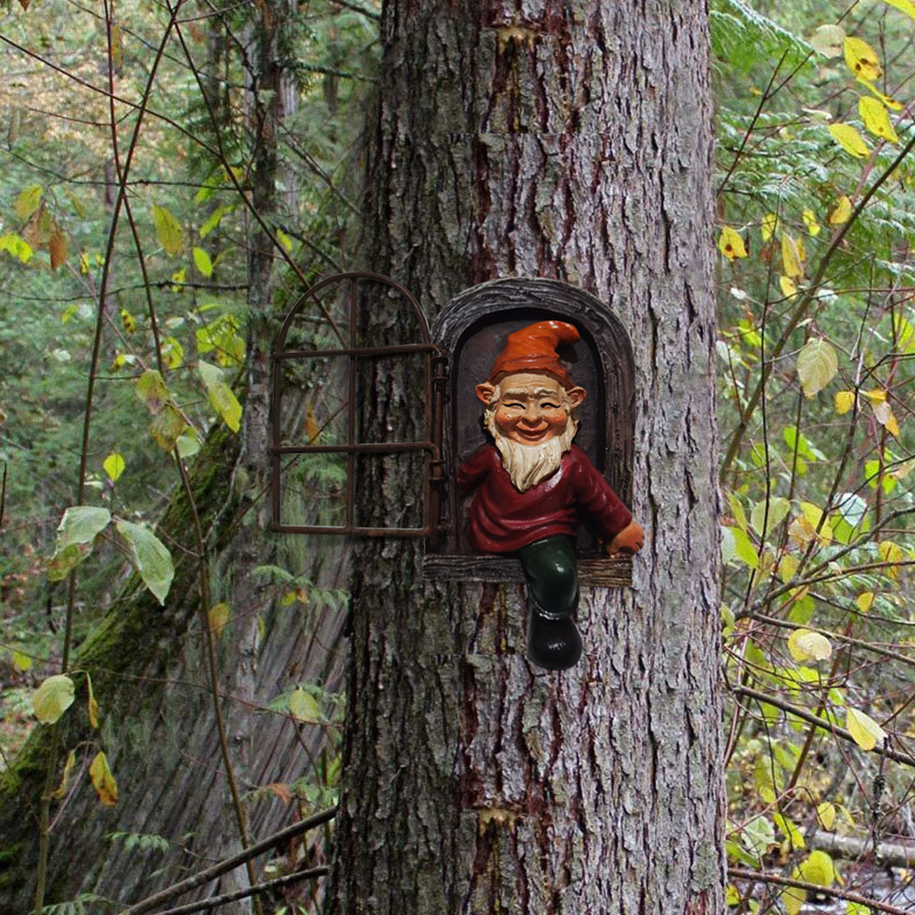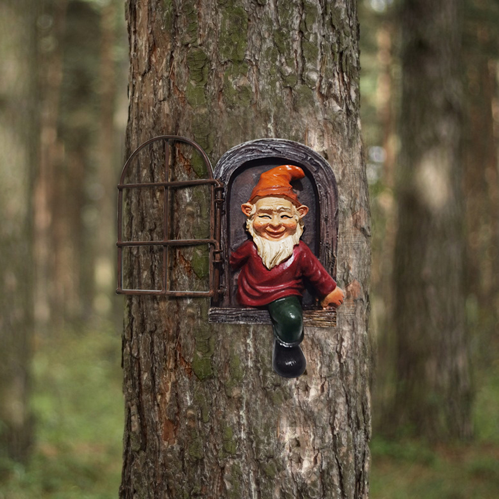 Resin Elf Gnome Out The Door Sculpture Garden Home Outdoor Landscape Crafts Dwarf Statue Garden Figurines Decorative Art Miniature