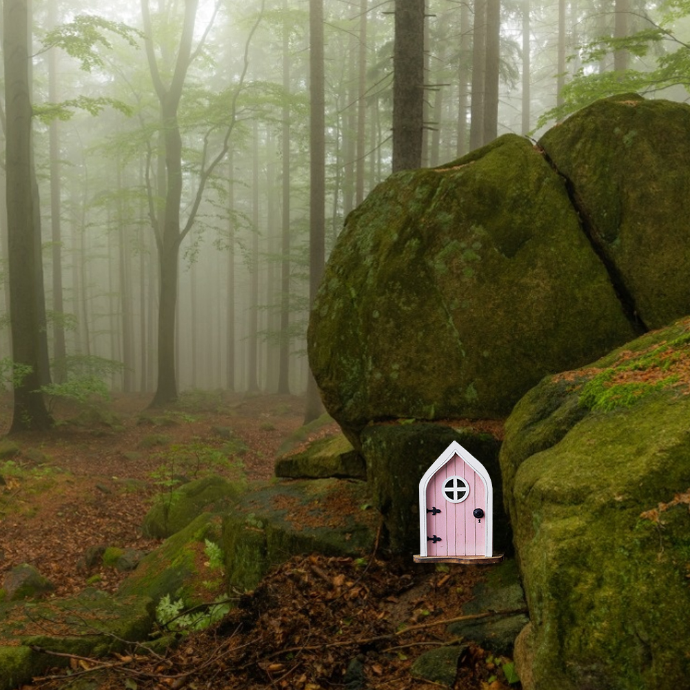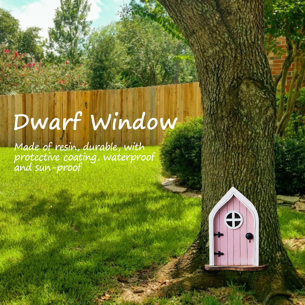 Fairy Gate Yard Sculpture Courtyard Wooden Miniature Fairy Dwarf Window Door for Tree Gnome Art Garden Statues Decoration
