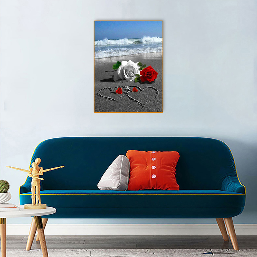 DIY 5D Mosaic Full Drill Round Shape Diamond Valentine Love Rose Resin Painting Kit Rhinestone Drawing Home Art Craft Bedroom Decoration