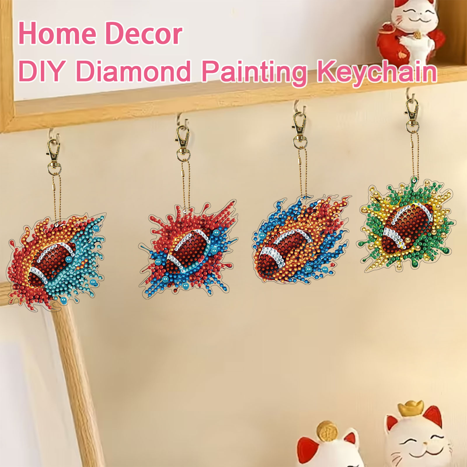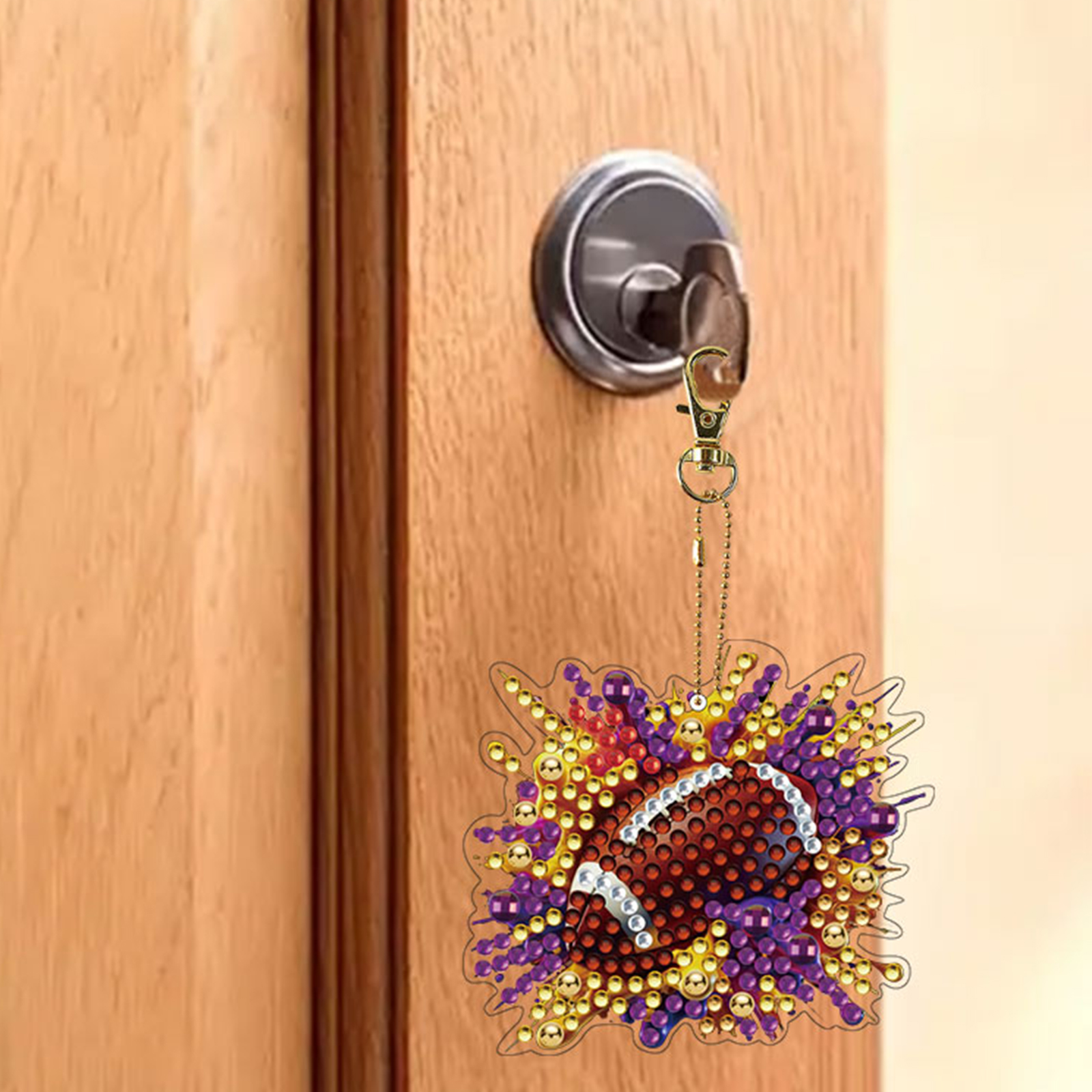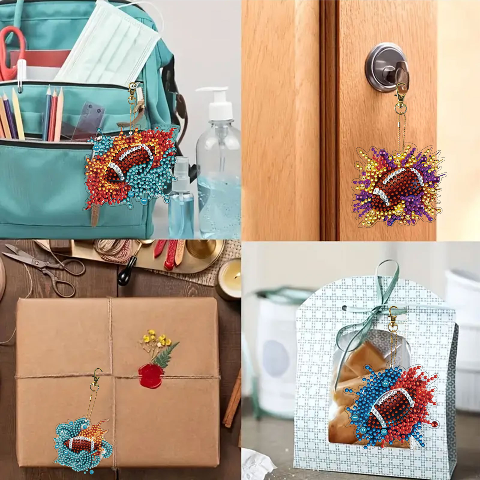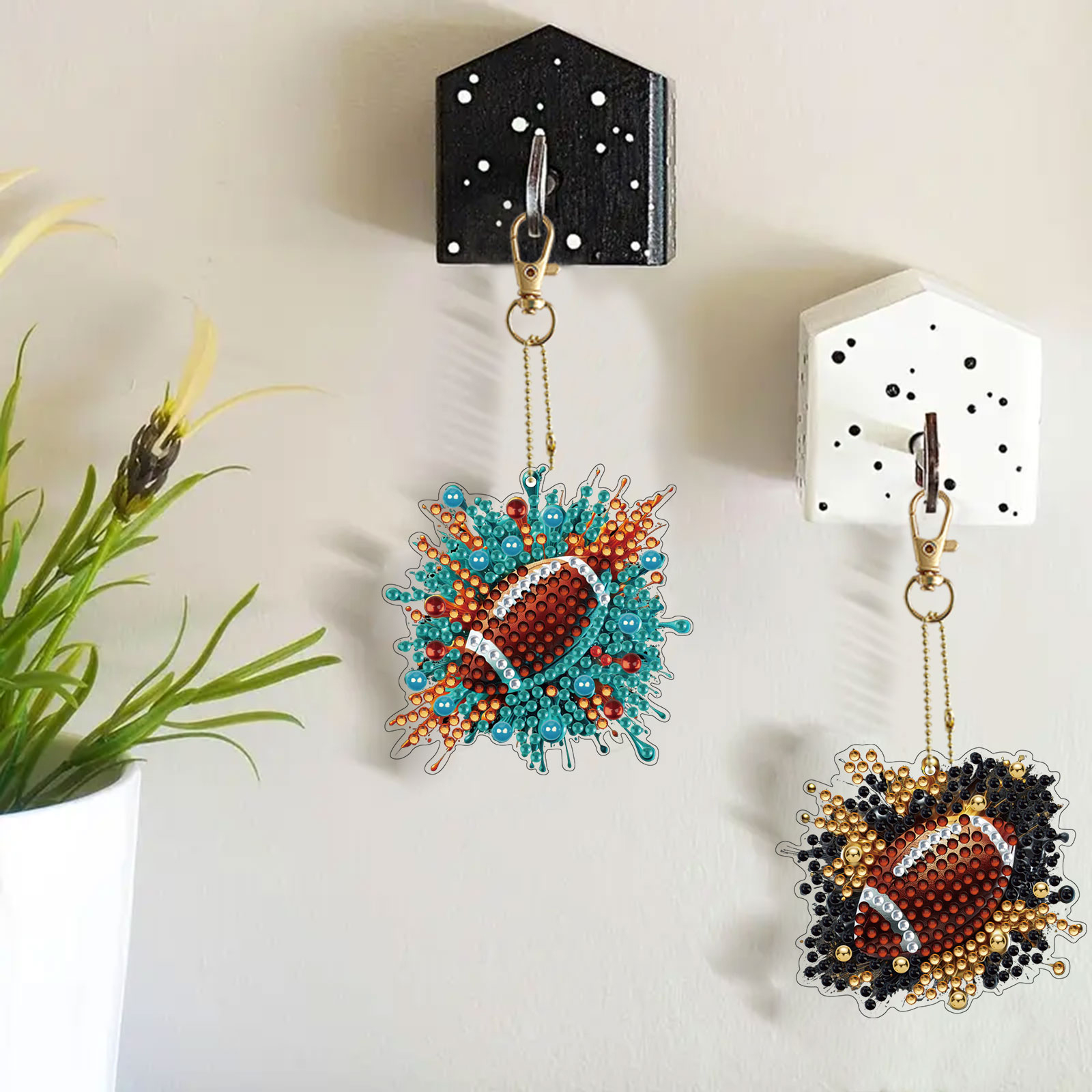 15Pcs Rugby DiY Double-Sided Diamond Art Keychain Ornaments Party Crafts Decor