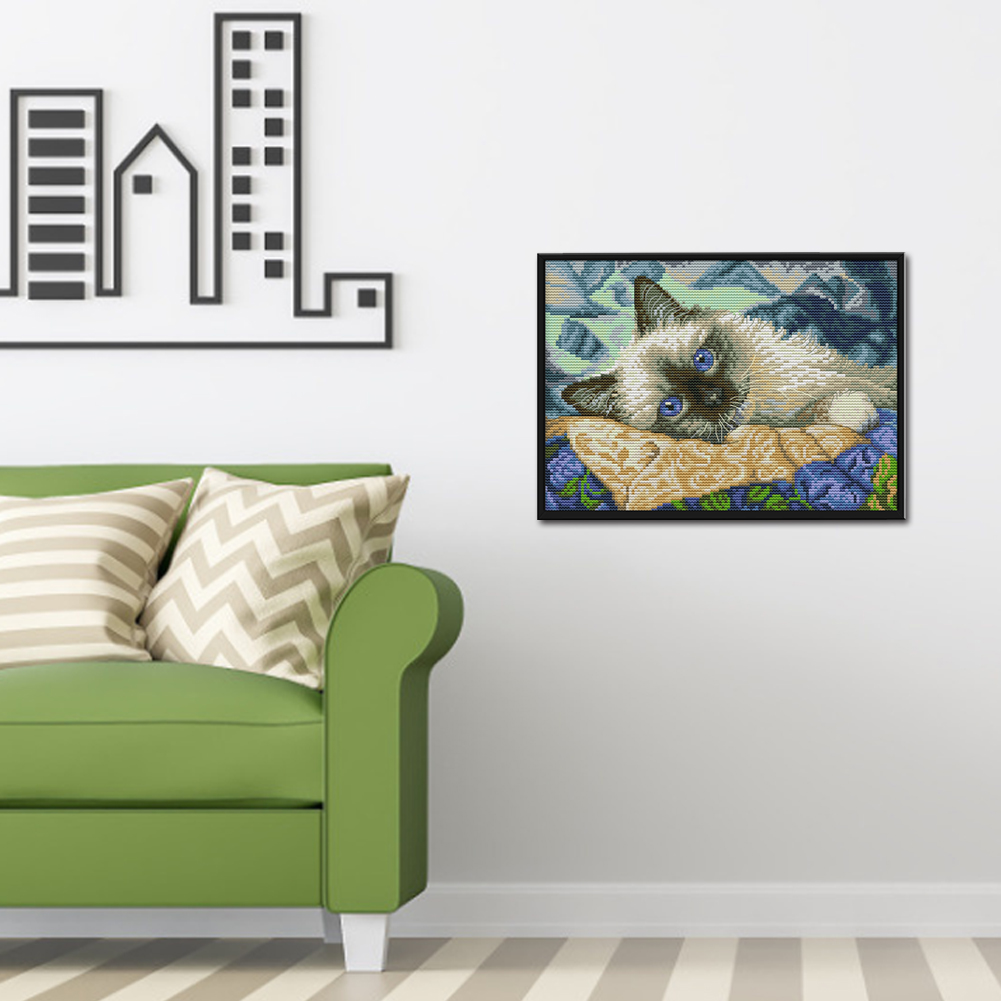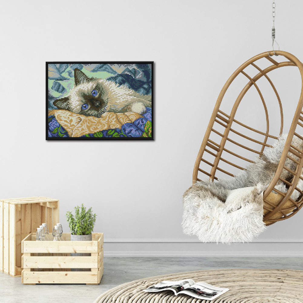 14CT Full Stamped Cross Stitch - Cat(Canvas|30*21CM)