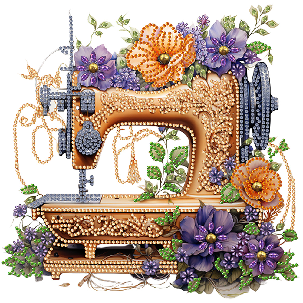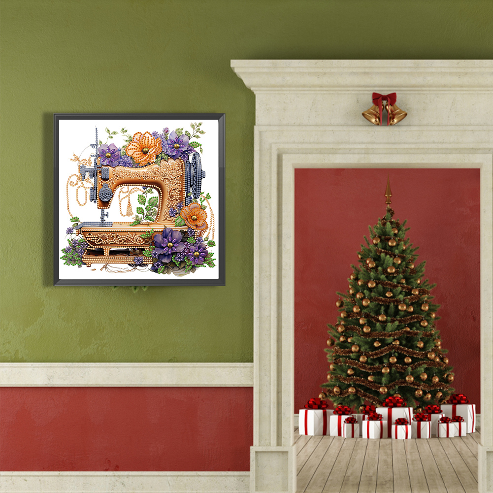 Diamond Painting - Partial Special Shaped Drill - Flower Sewing Machine(Canvas|30*30cm)