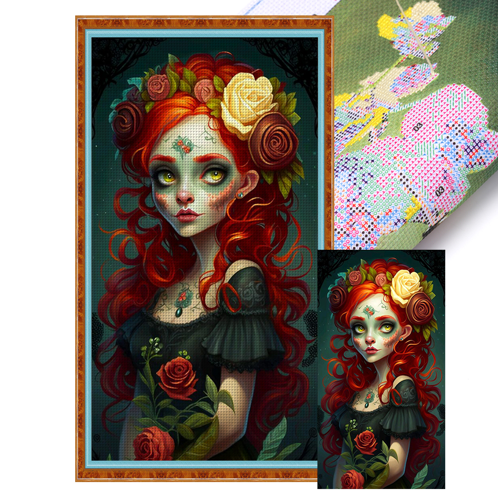 11CT Full Stamped Cross Stitch - Scary Girl(Canvas|40*70CM)