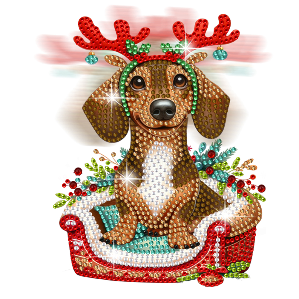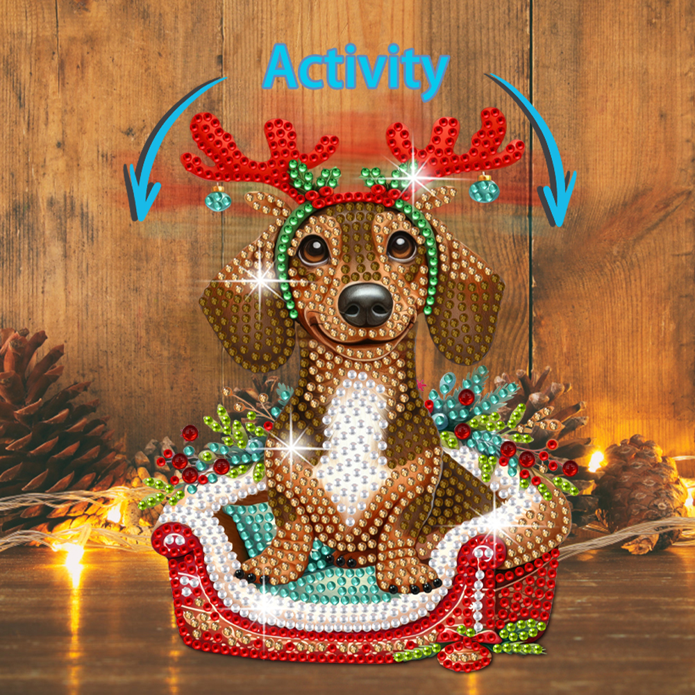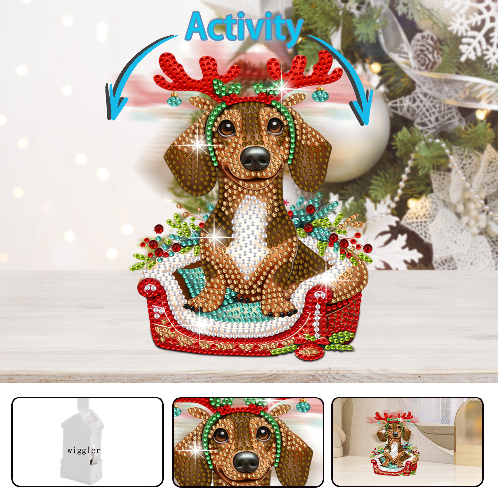 DIY Xmas Dachshund Acrylic Shaking Head Desktop Diamond Painting Art Kits for Kids