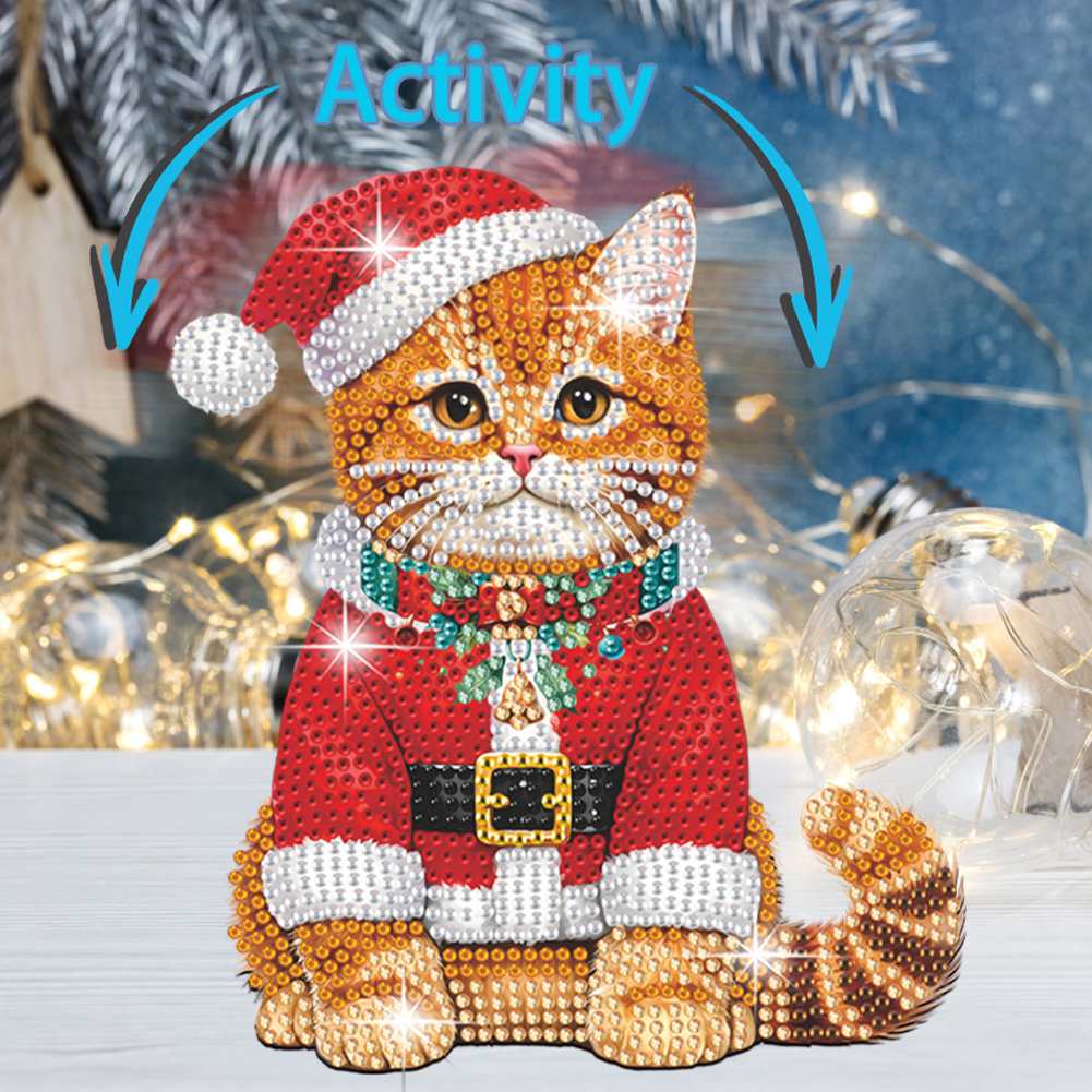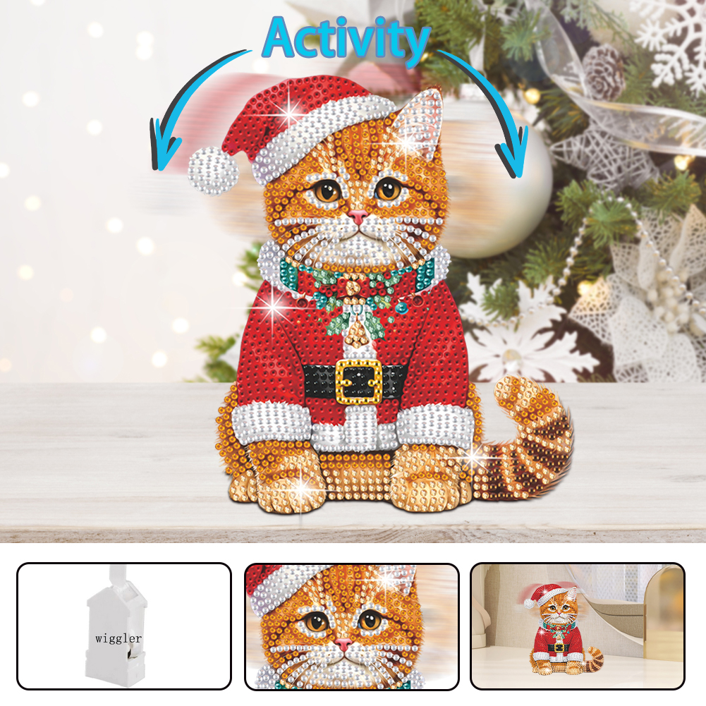 DIY Xmas Orange Cat Acrylic Shaking Head Desktop Diamond Painting Art Kits for Kids
