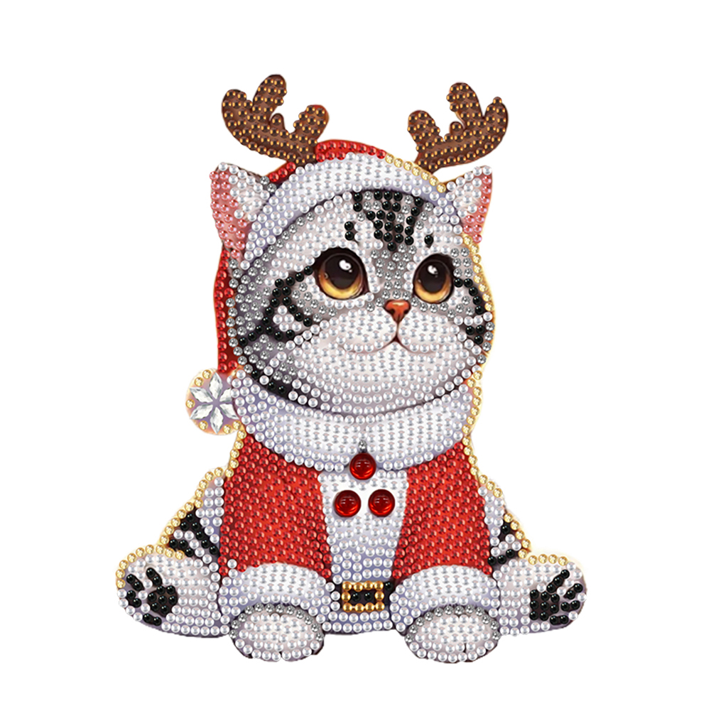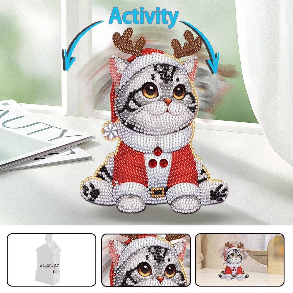Xmas Acrylic Shaking Head 5D DIY Diamond Art Tabletop Decoration (Christmas Cat)