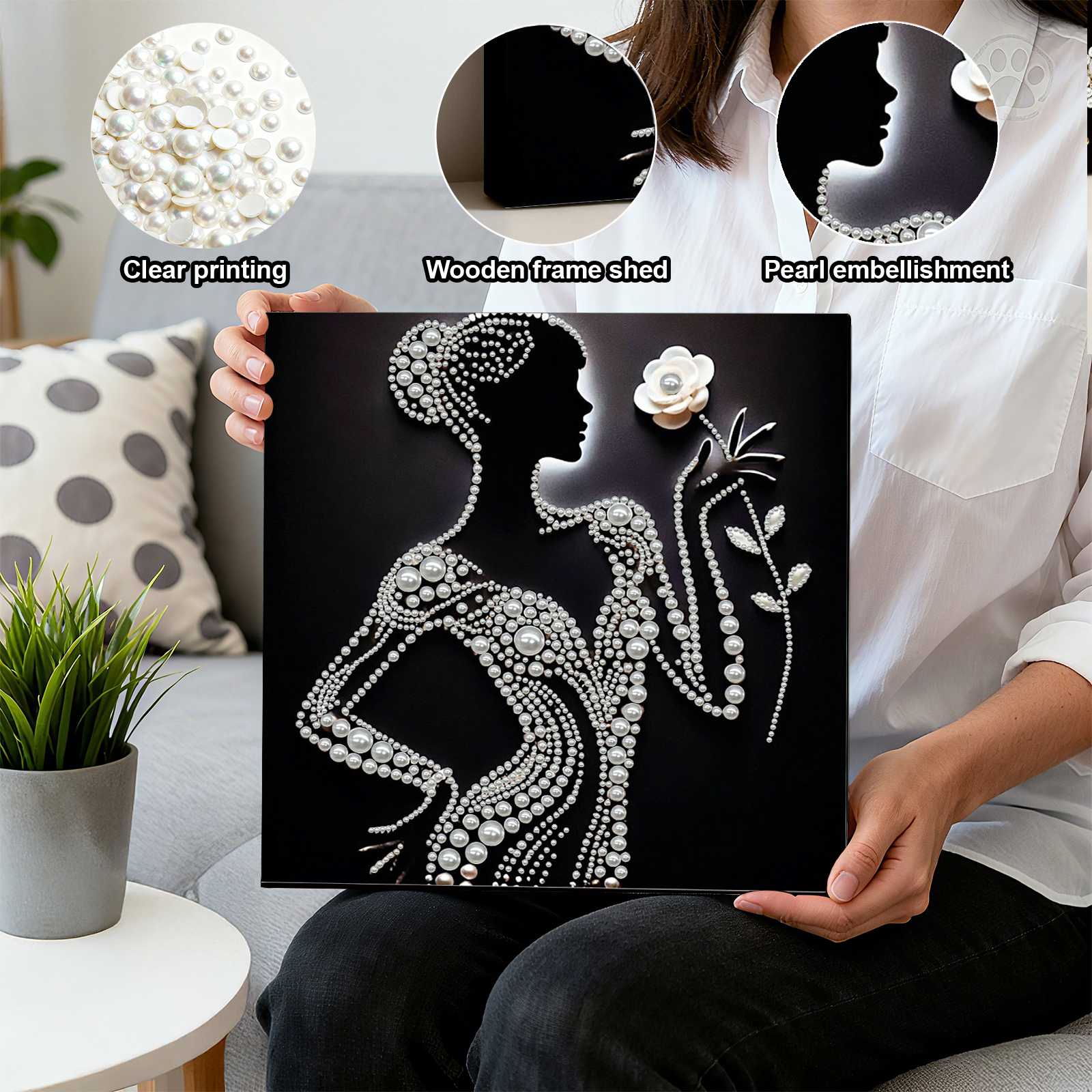 Pearl Silhouette Lady DIY Pearl Art Diamond Painting 30x30cm for Home Wall Decor