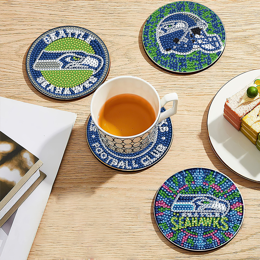 Seattle Seahawks 6pcs DIY Diamond Painting Acrylic Coasters Holder for Beginner Adult