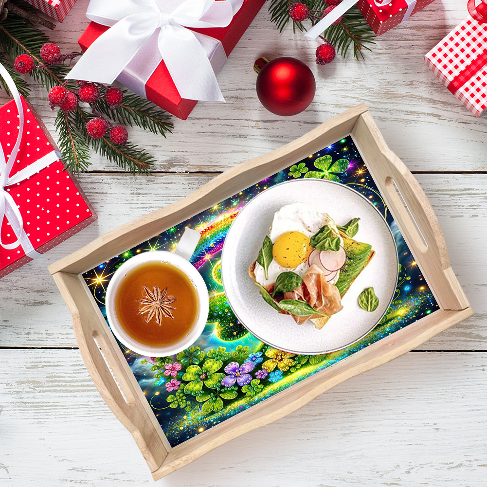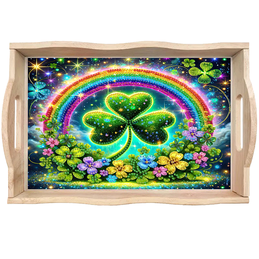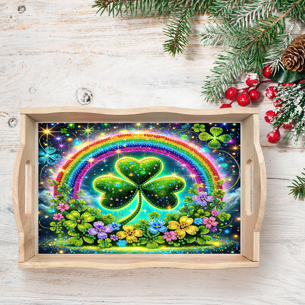 5D DIY Wooden St. Patricks Day Diamond Painting Tray Art Craft for Desk Coffee Table