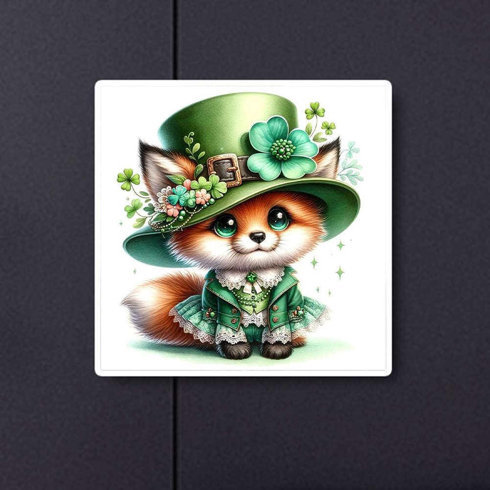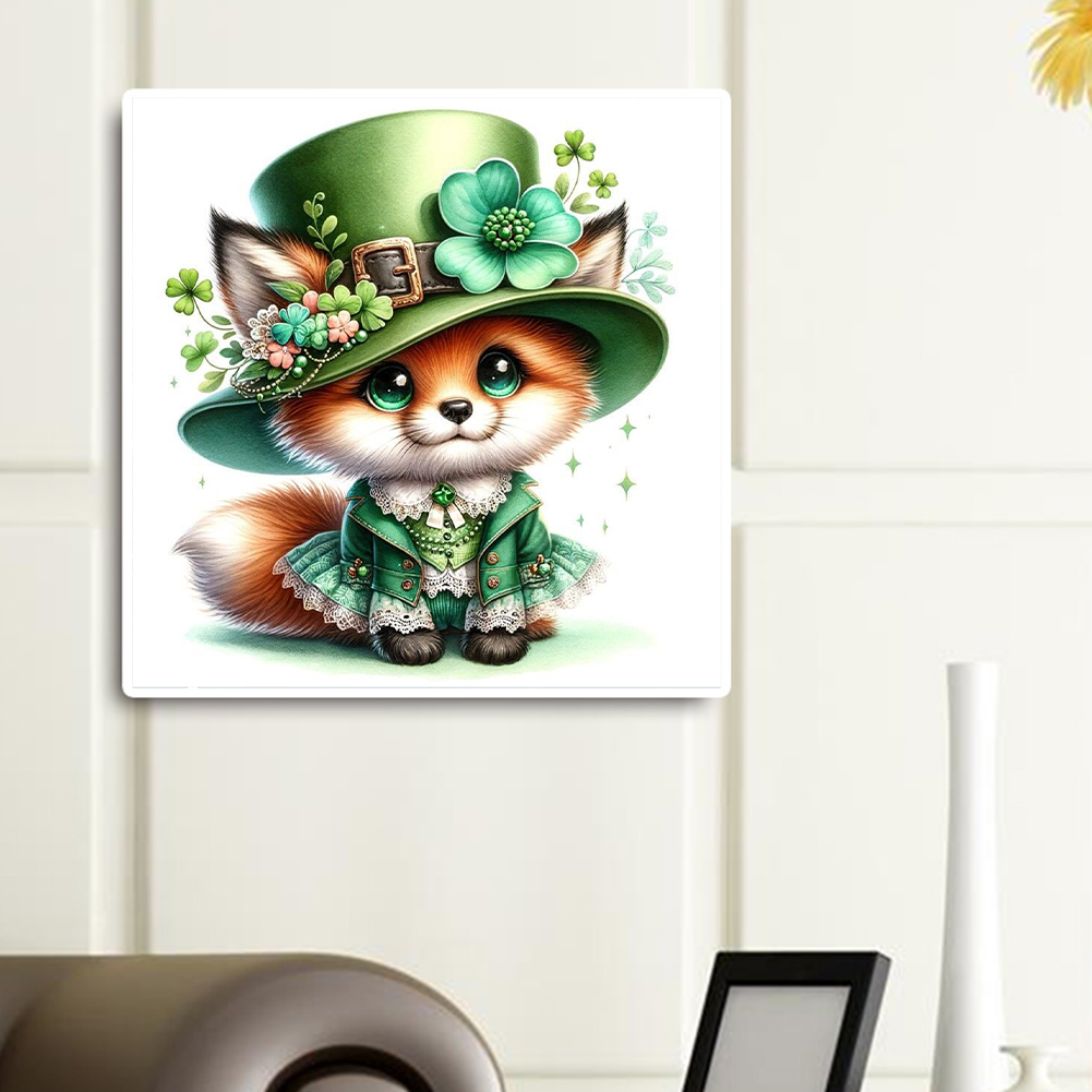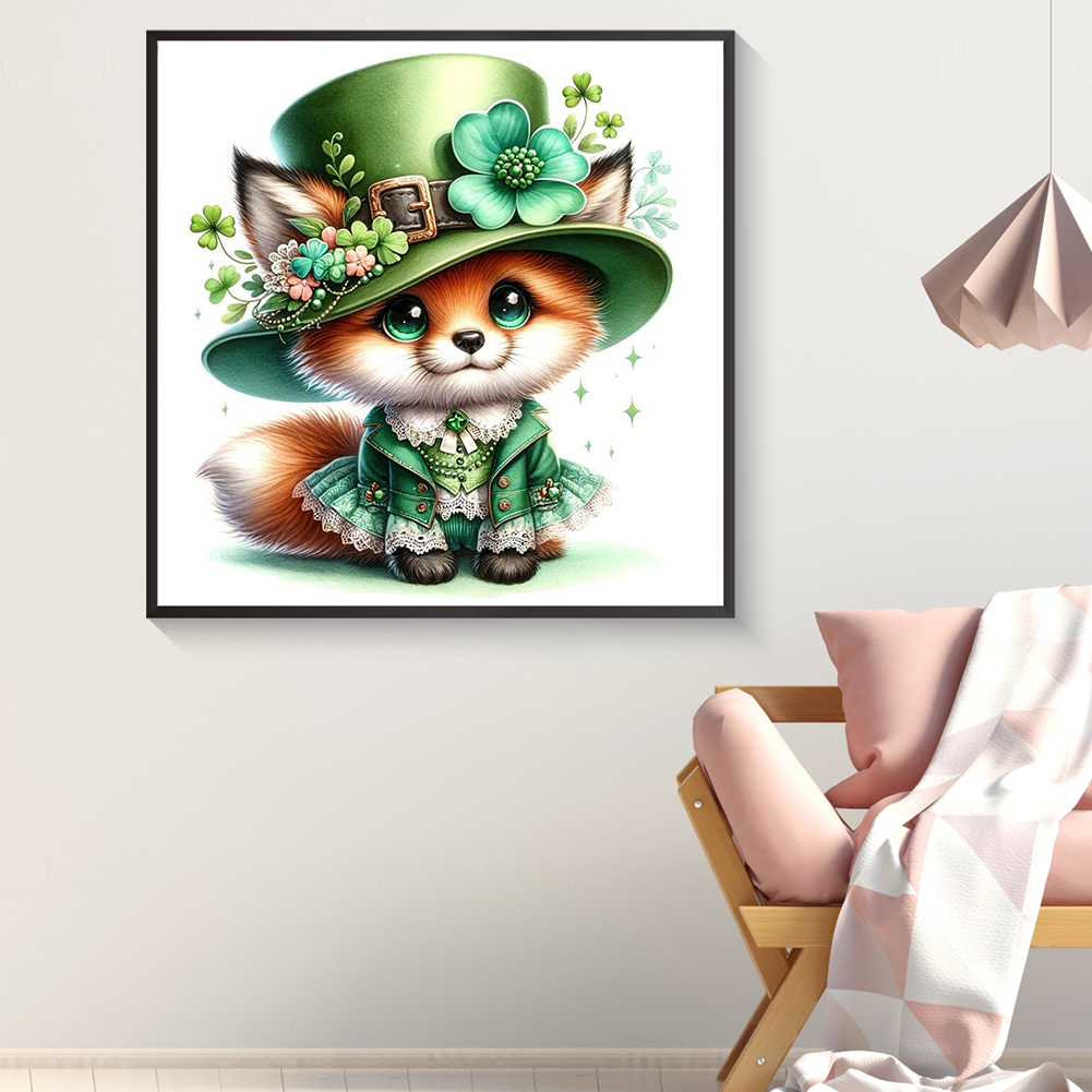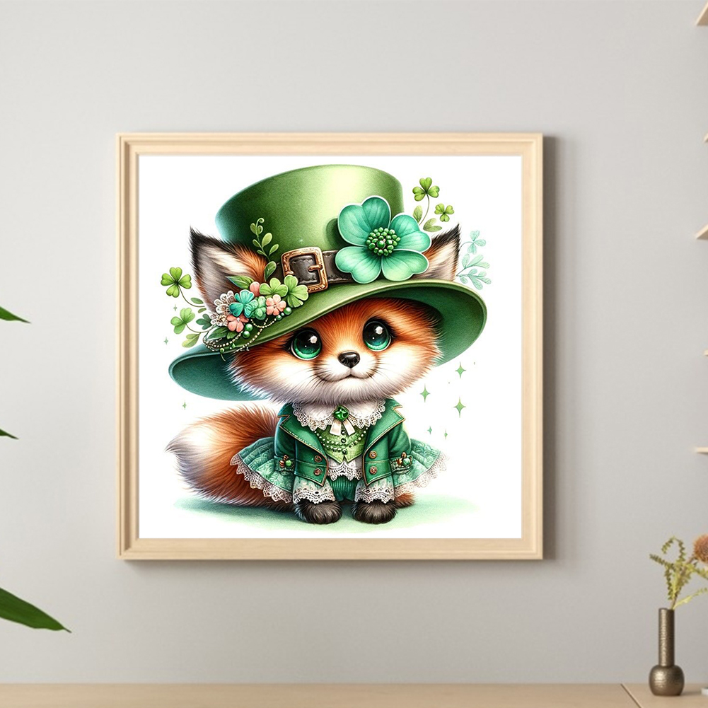 Diamond Painting - Full Round Drill - St Patrick's Clover Fox(Canvas|30*30cm)