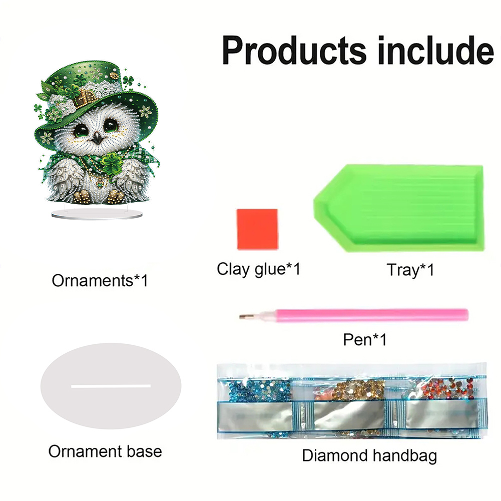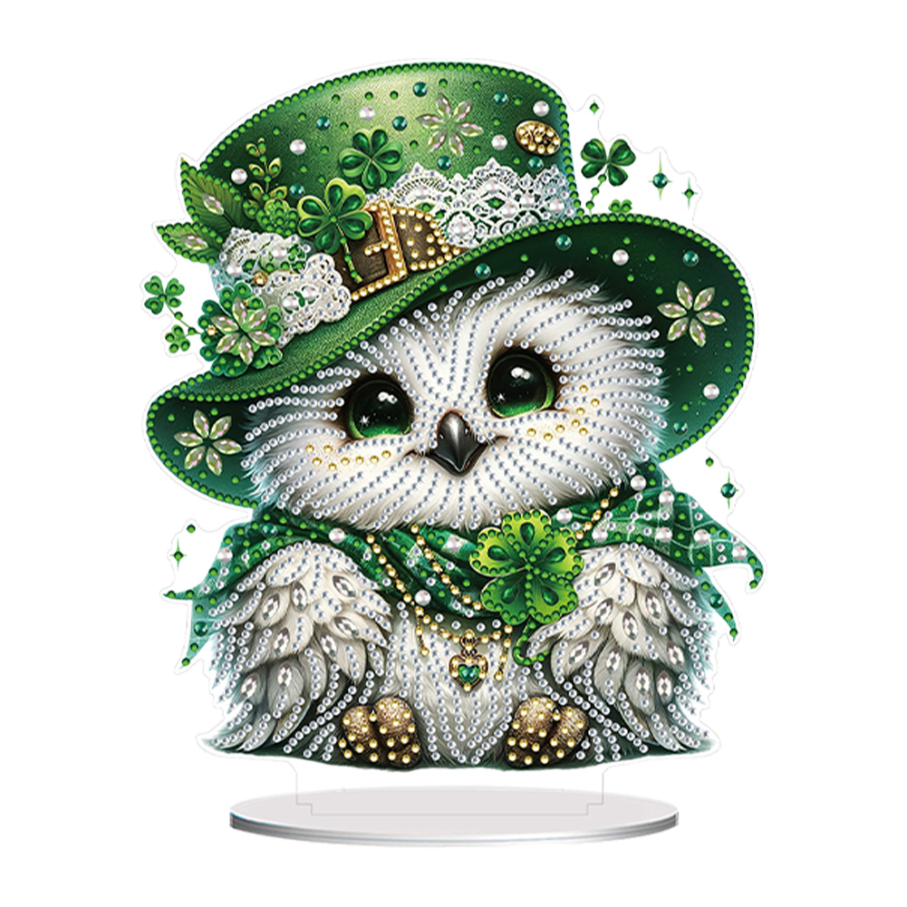 DIY Acrylic St. Patricks Day Owl Special Shape Diamond Painting Tabletop Ornament Creative Home Decor & Gift Idea for Adults - Relaxing Craft Activity