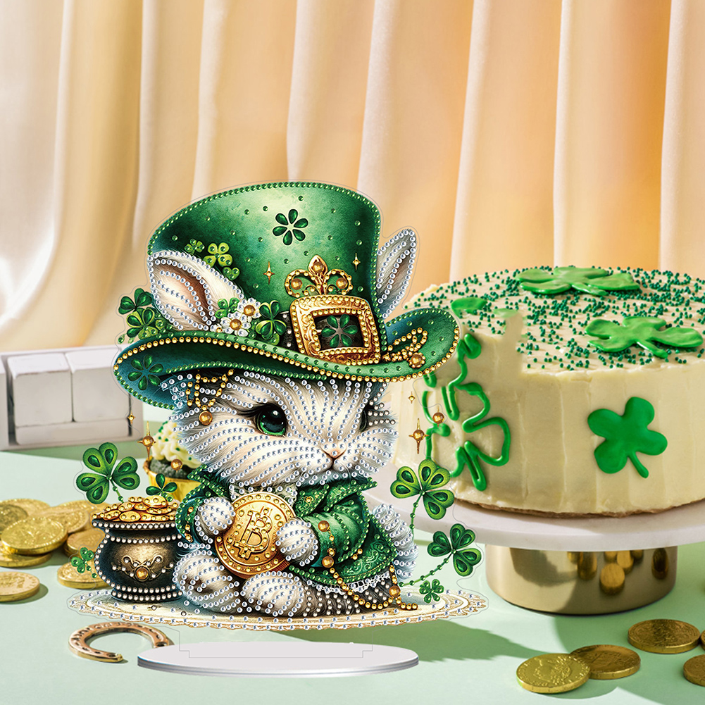 DIY Acrylic St. Patricks Day Rabbit Special Shape Diamond Painting Tabletop Ornament Creative Home Decor & Gift Idea for Adults - Relaxing Craft Activity